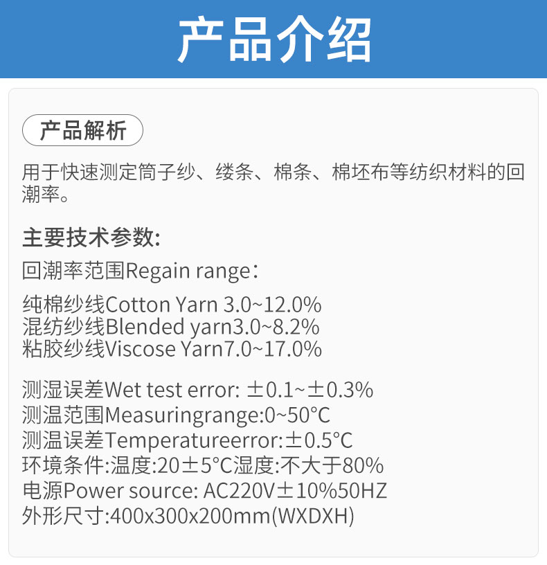 YG201型纱线测湿仪 电子数显多用型测湿仪 棉条化纤水分测试仪仪