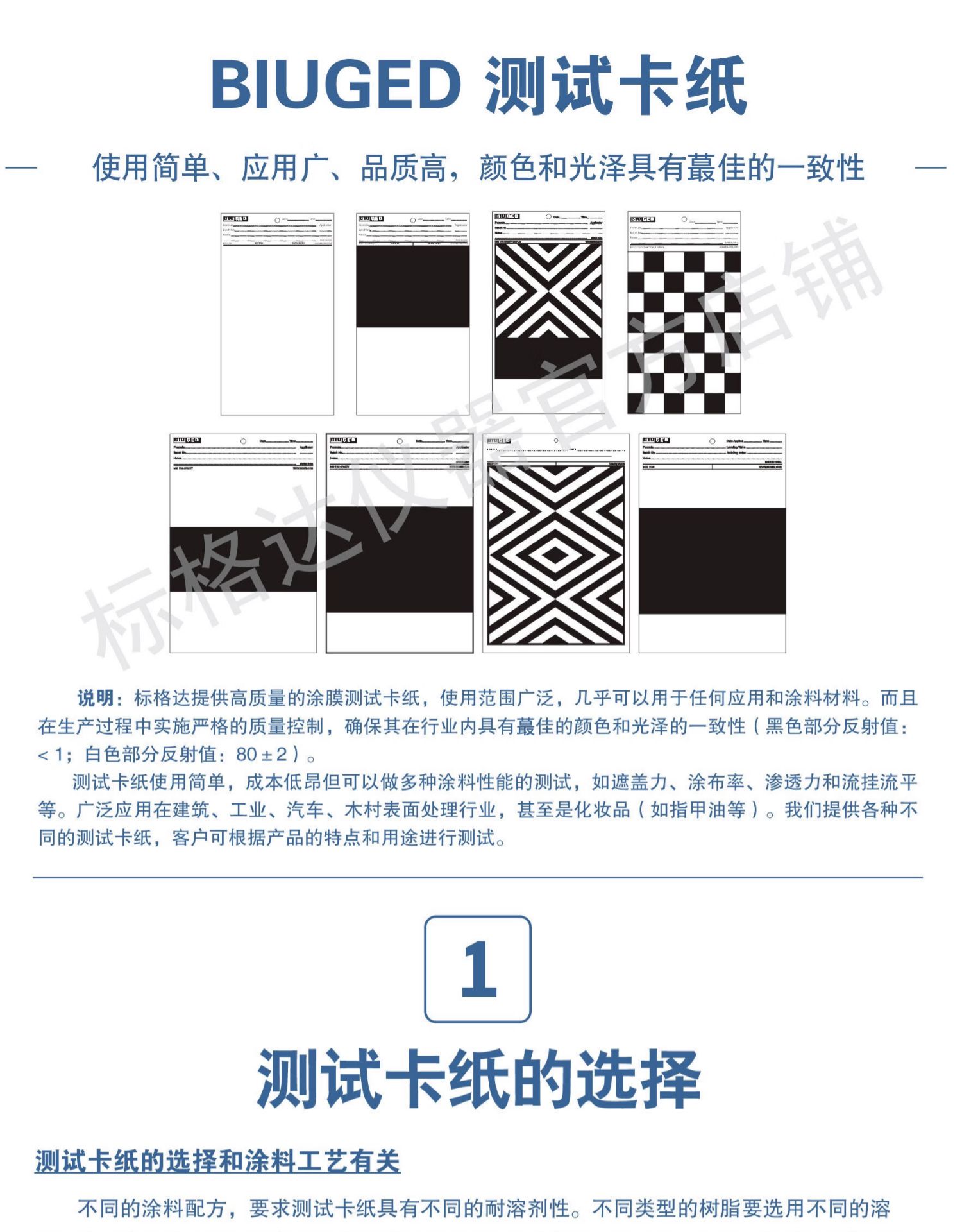 标格达涂料遮盖率测试卡纸 遮盖力卡纸 黑白斜纹卡纸反射率涂膜纸