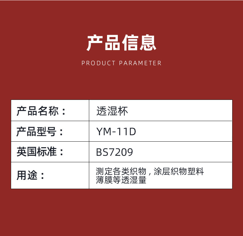 祈工YM-11D透湿杯英标透湿杯BS7209特质透湿杯英国标准透湿杯