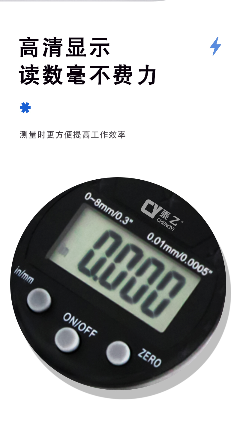 祈色乘乙微型数显百分表千分表0-8mm高精度指示表高度规计尺测量仪