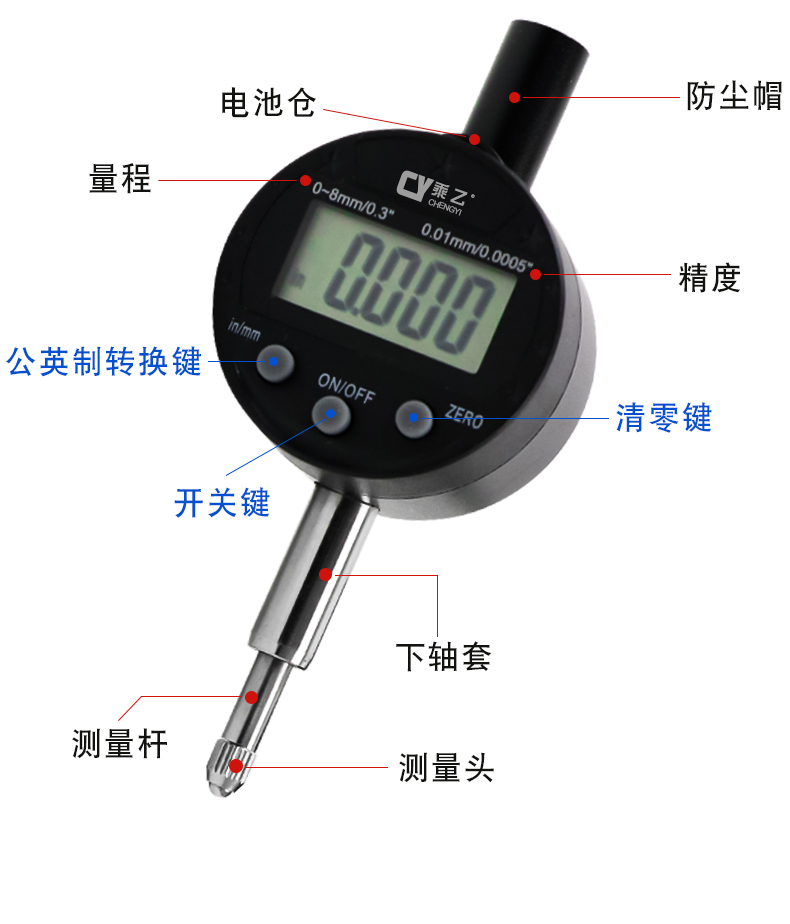 当前位置:首页 » 产品中心 » 祈色乘乙微型数显百分表千分表0-8mm高精度指示表高度规计尺测量仪
