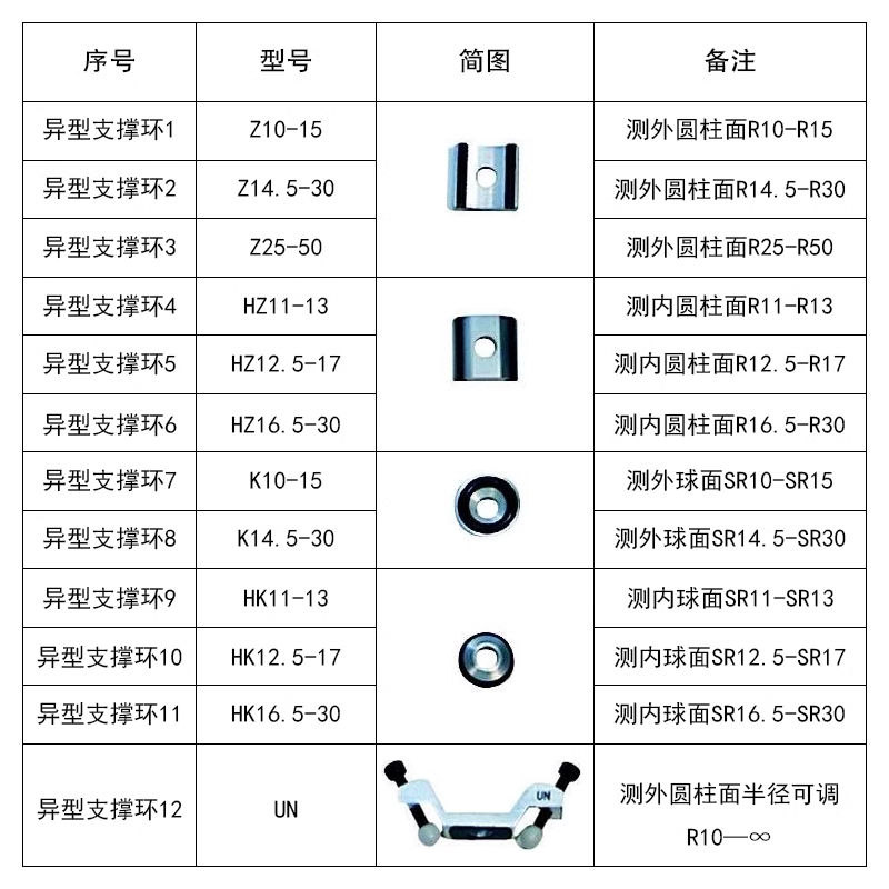 异型支撑环12 | UN | 测外圆柱面半径可调 R10—∞ |