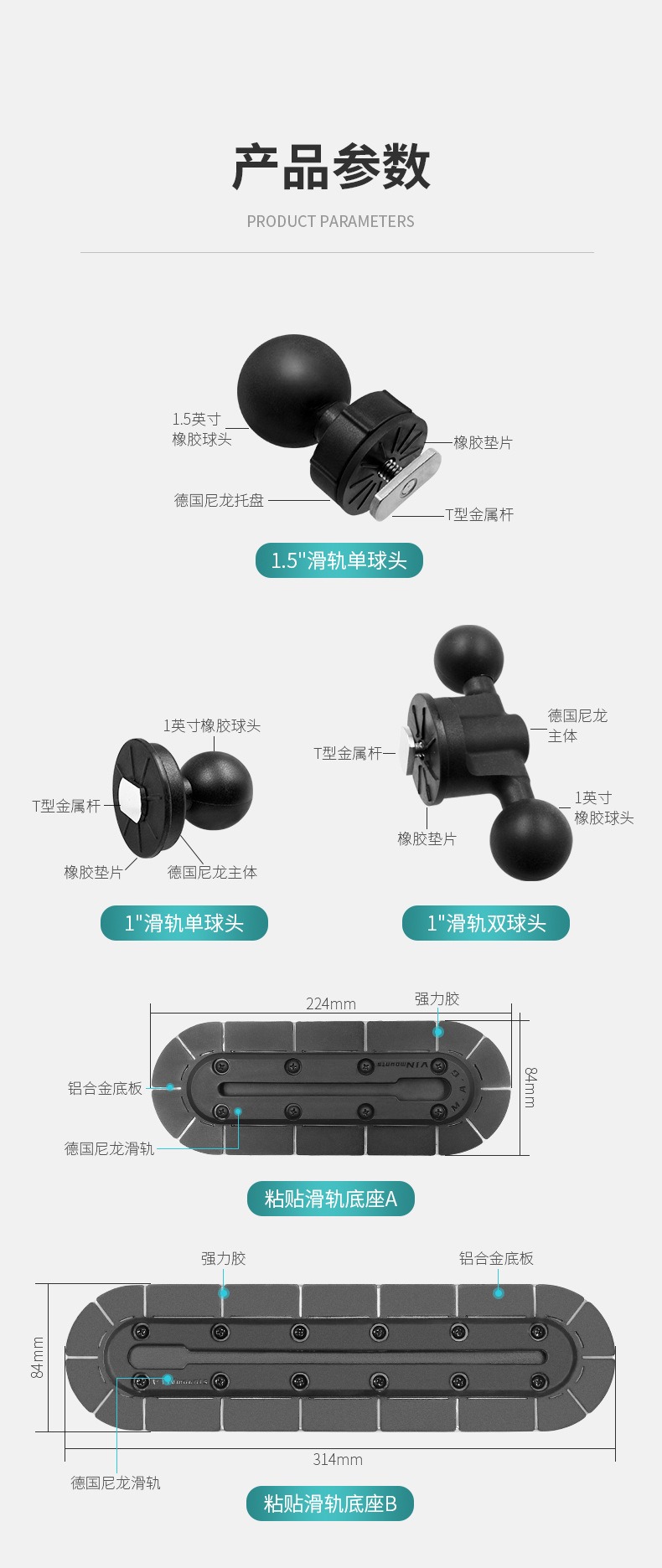 1英寸滑轨双球头