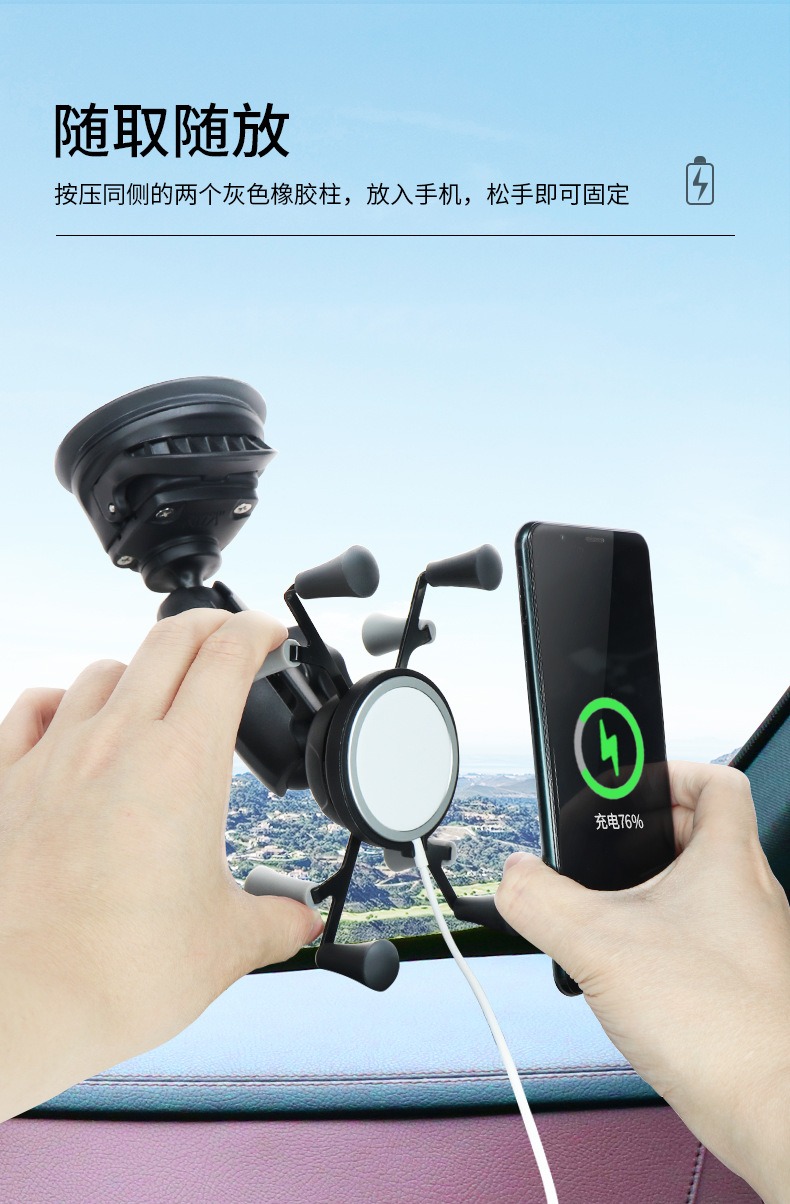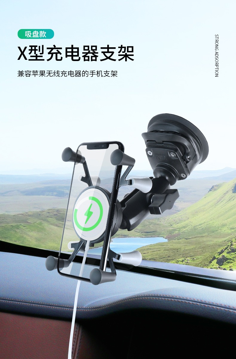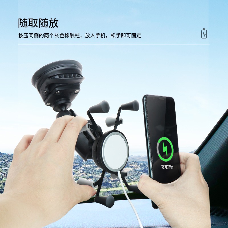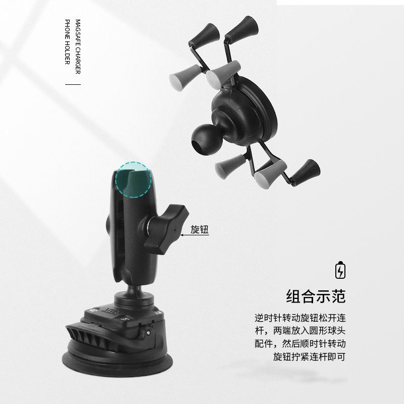 祈色越野车挡吸盘式平果无线充X型手机夹兼容Magsafe球头吸盘手机支架