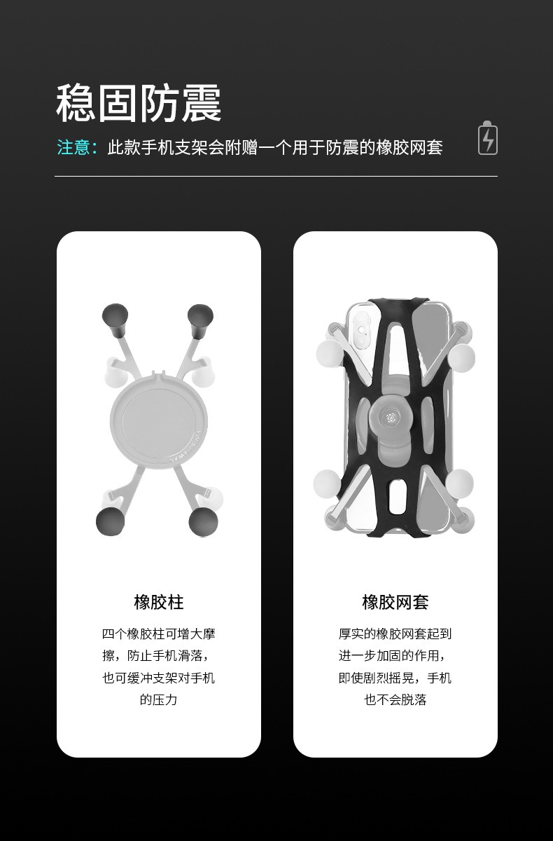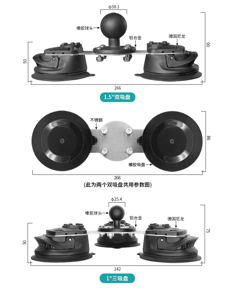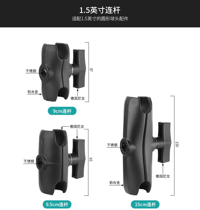 1.5英寸双吸盘+9.5cm连杆+1.5英寸手机夹C(赠橡胶网套)