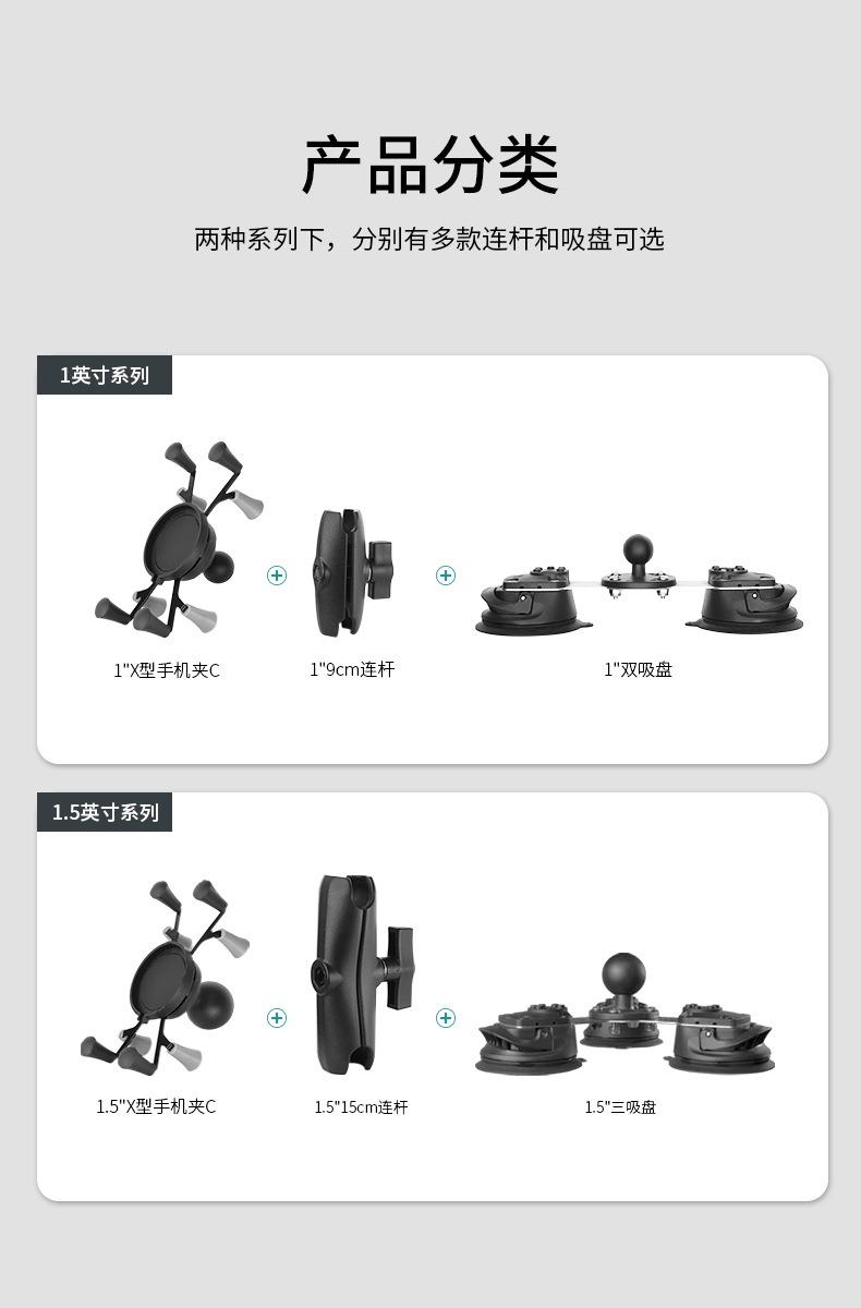 1英寸双吸盘+17cm连杆+1英寸手机夹C(赠橡胶网套)