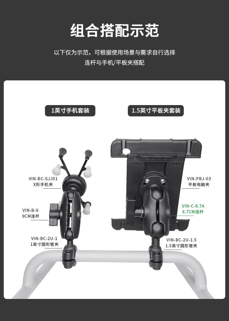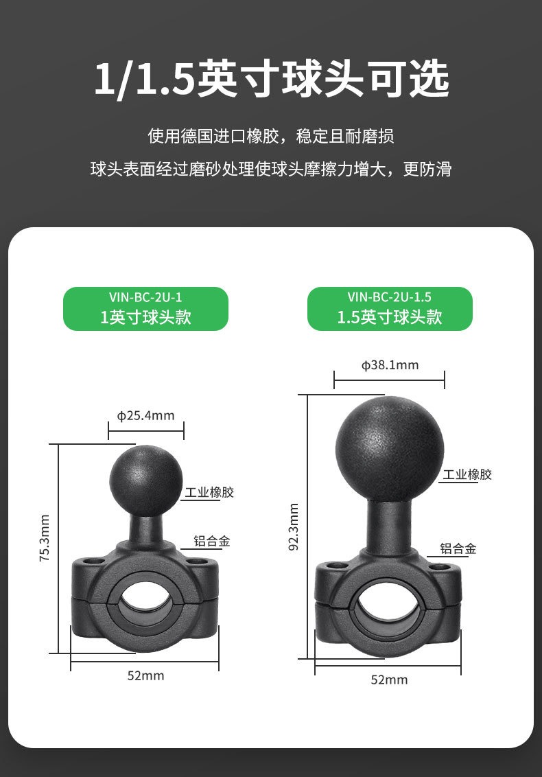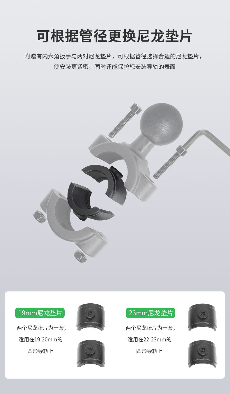 祈色中型管状导轨球头底座,用于直径19mm至23mm