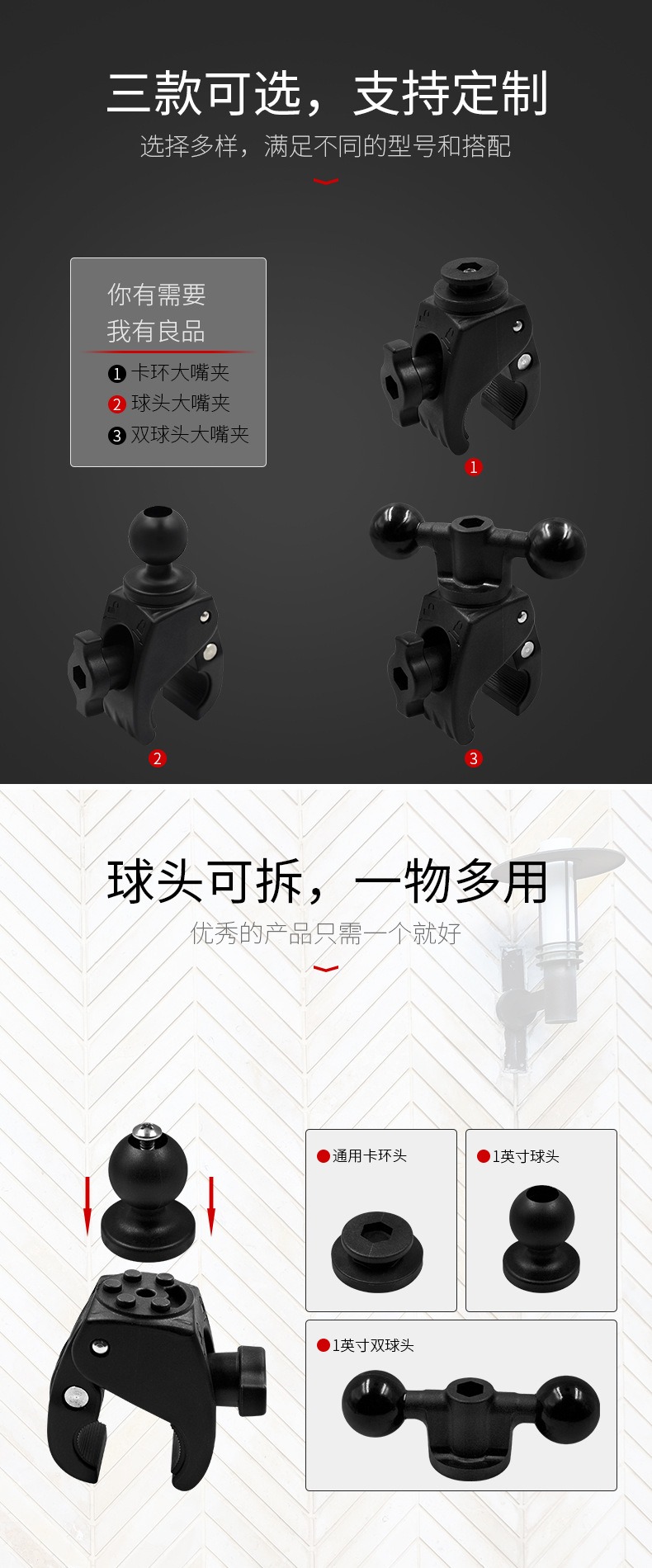 当前位置:首页 » 产品中心 » 祈色摩托车圆管快拆支架工业平板电脑圆管夹支架1球头大嘴夹兼容