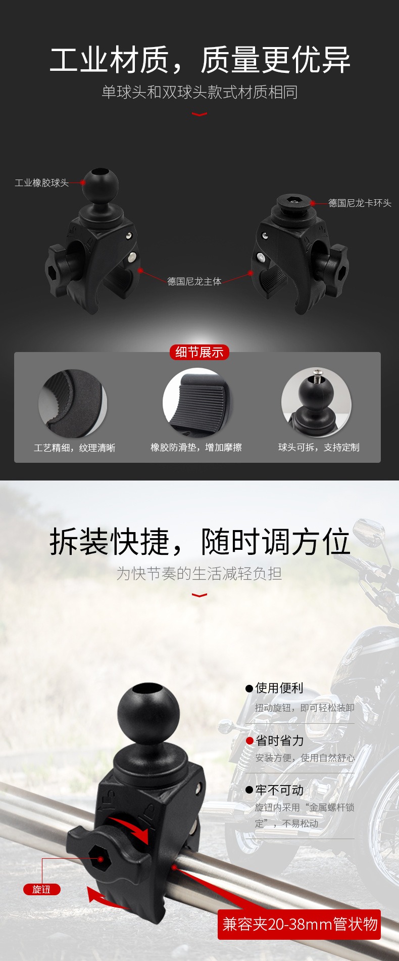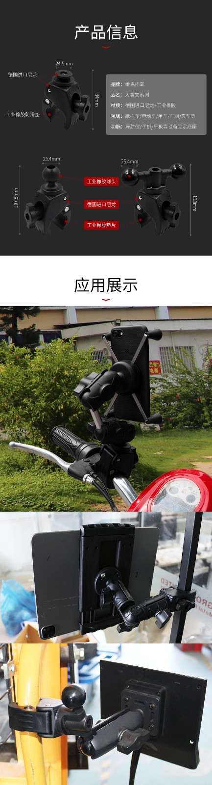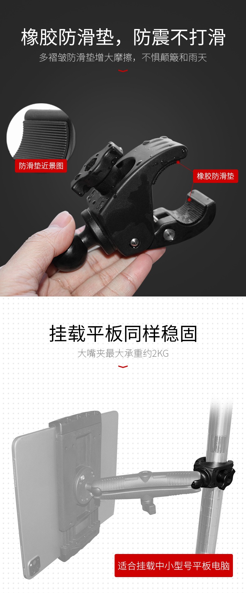 祈色摩托车圆管快拆支架工业平板电脑圆管夹支架1球头大嘴夹兼容
