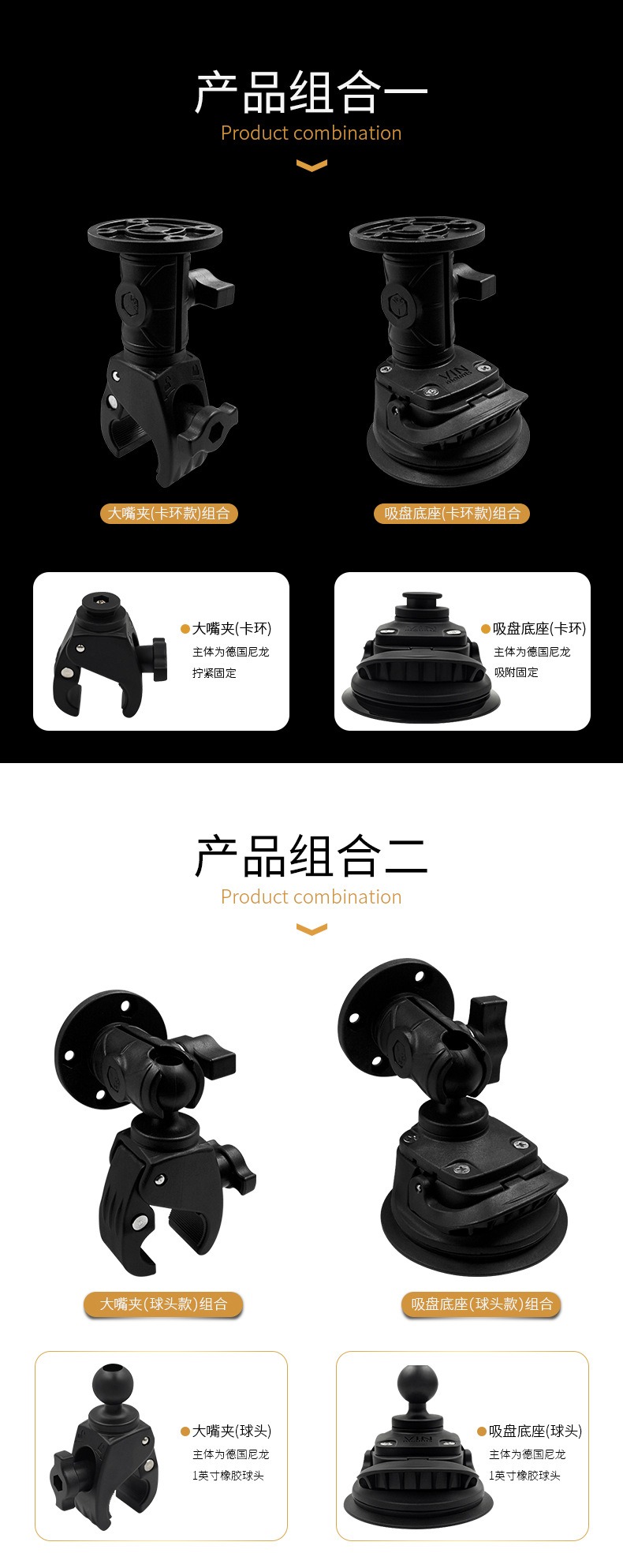 祈色VIN货车驾驶台轻型导航设备支架兼容1英寸球头尼龙卡扣连杆支架