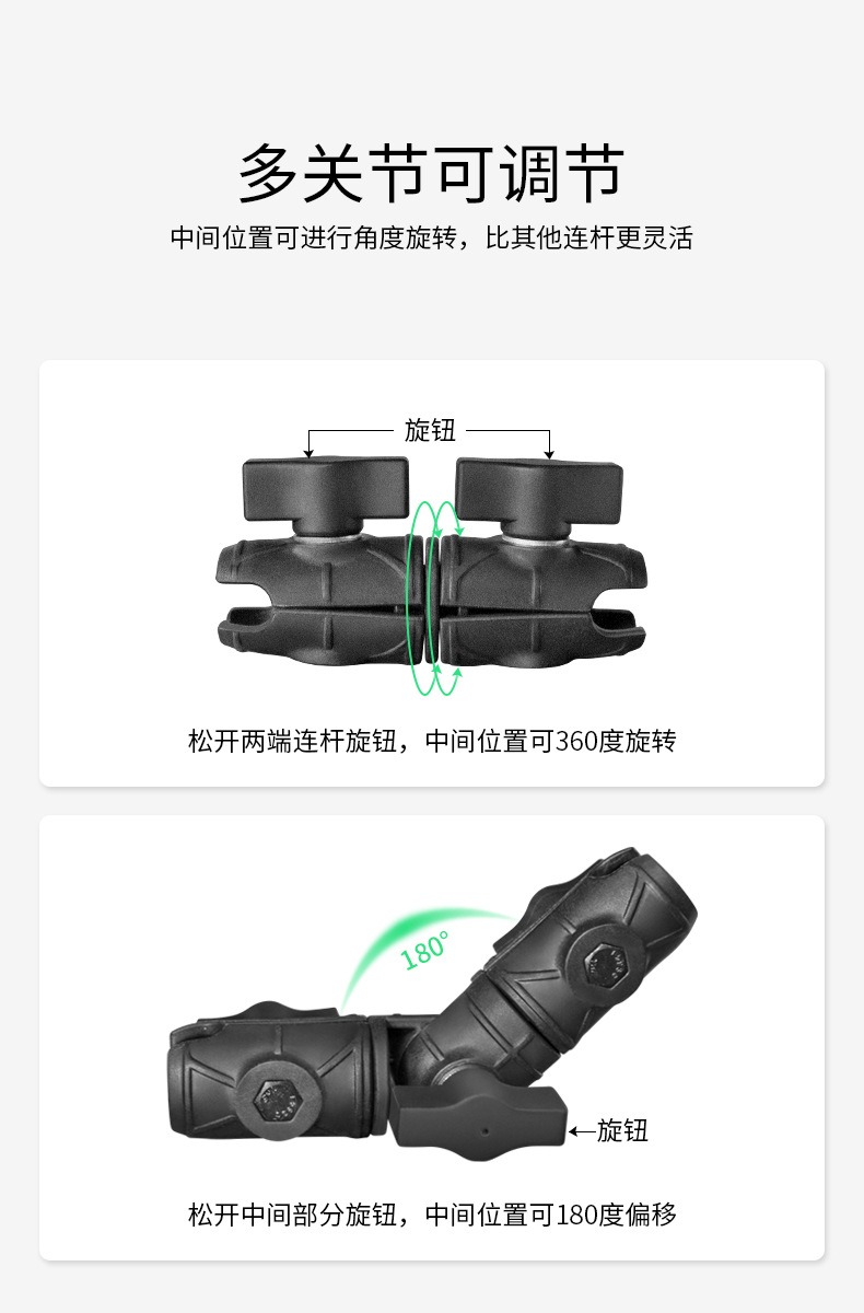 祈色VIN进口尼龙车载设备球头连杆兼容1英寸球头双关节调节11厘米连杆
