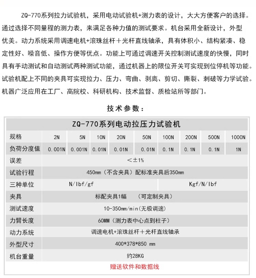 祈色智取ZQ-770*电线塑料金属布料胶带拉压力剥离试验机推拉力计架