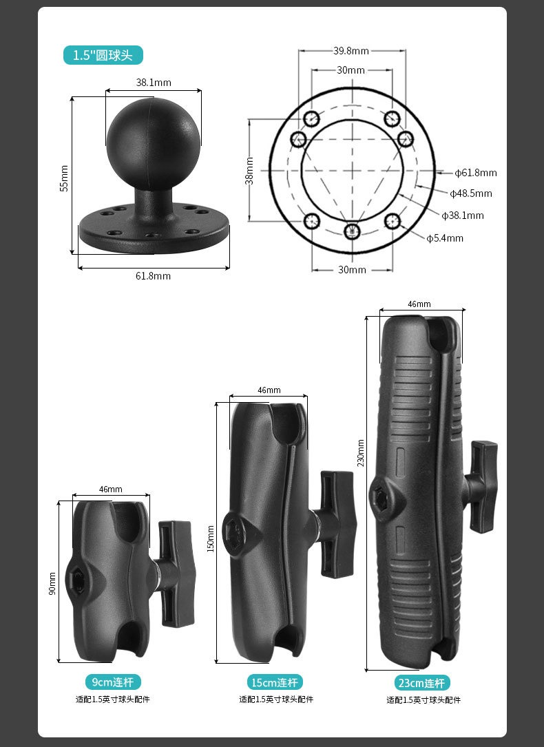 通用孔位长方形+圆形底座+15cm铝合金连杆