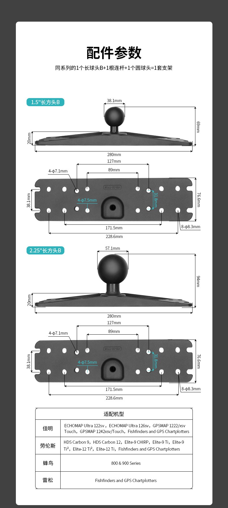 祈色劳伦斯探鱼器万向旋转球头支架多孔位通用船载探测器显示器支架