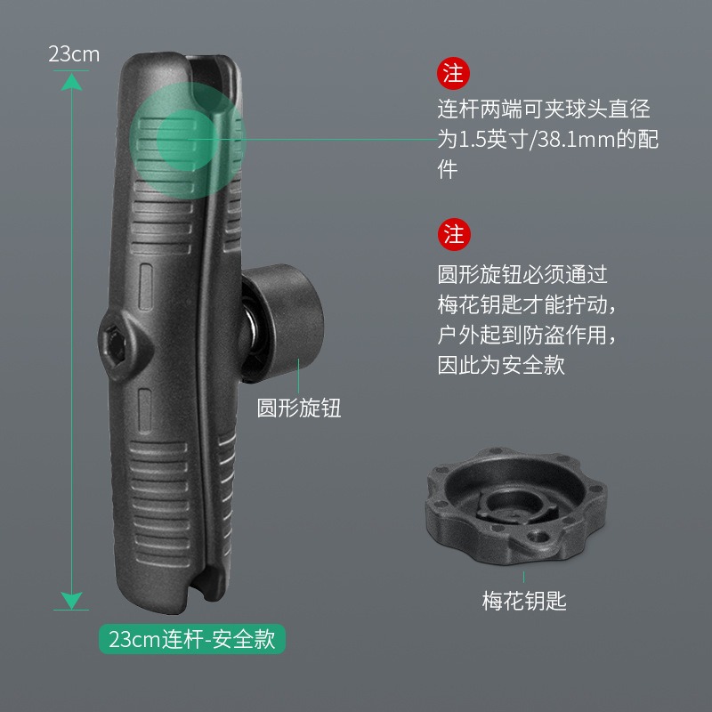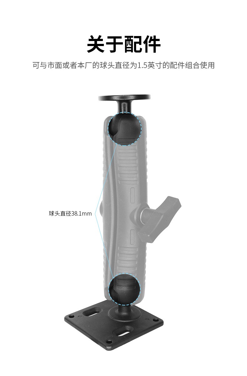 祈色叉车三防平板球头支架铝合金防盗加长连杆臂兼容1.5球头23cm支架
