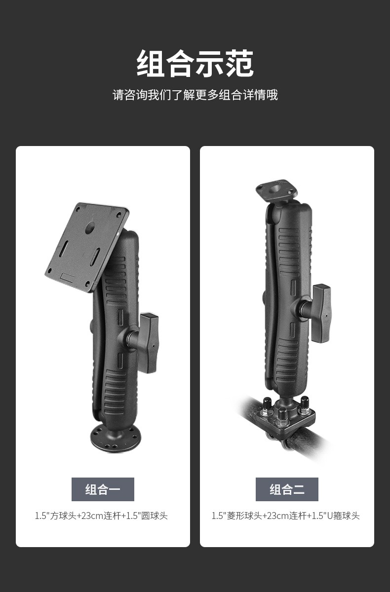 当前位置:首页 » 产品中心 » 祈色叉车三防平板球头支架铝合金防盗加长连杆臂兼容1.5球头23cm支架