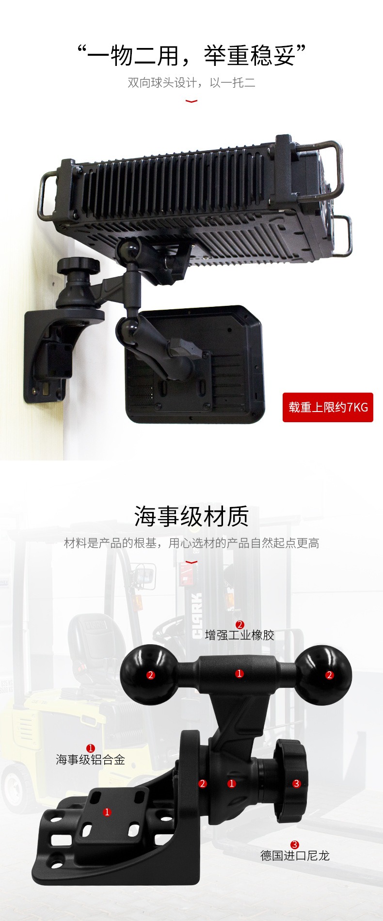 祈色维恩挂载横臂车载双1.5英寸双球头扩展支架