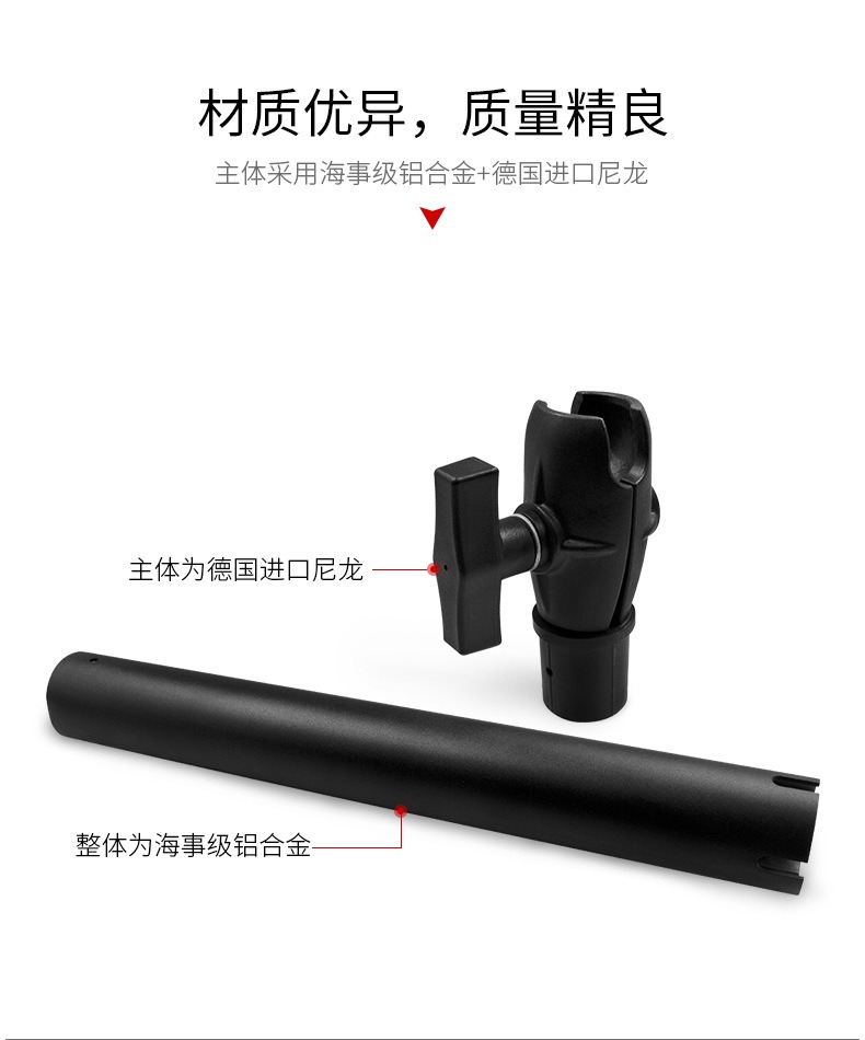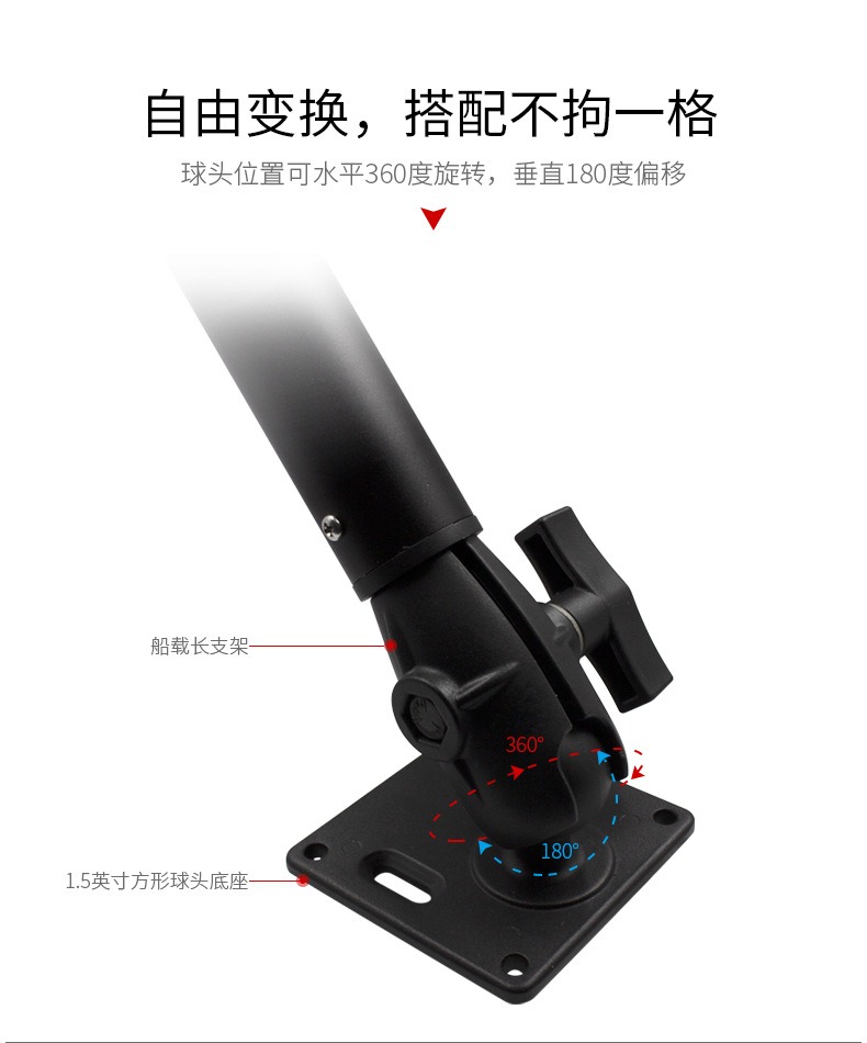 祈色船载立柱式35mm直径圆管安装支架兼容1.5英寸球头40cm铝合金连杆