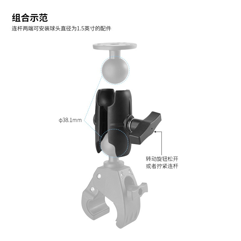 祈色货车仪表台记录仪固定球头支架增强尼龙兼容RAM1.5寸球头短款连杆