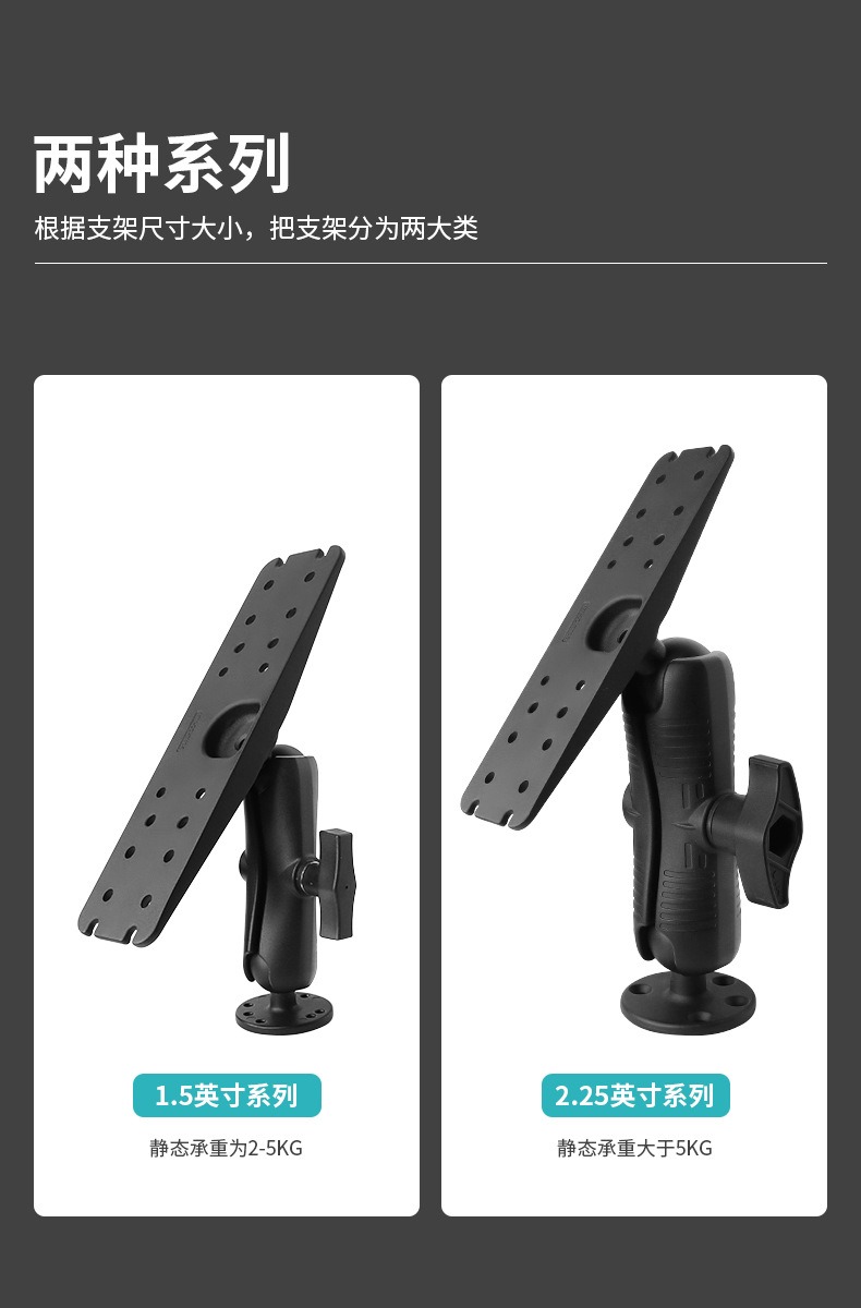 祈色跨境劳伦斯可视探鱼器万向调节支架2.25英寸球头筏钓鱼探仪支架