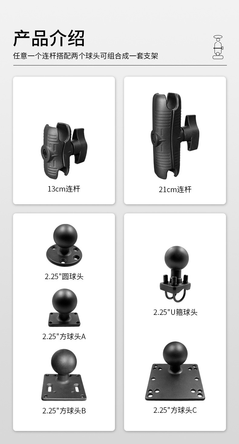 21cm连杆+2.25”方球头B+2.25”圆球头