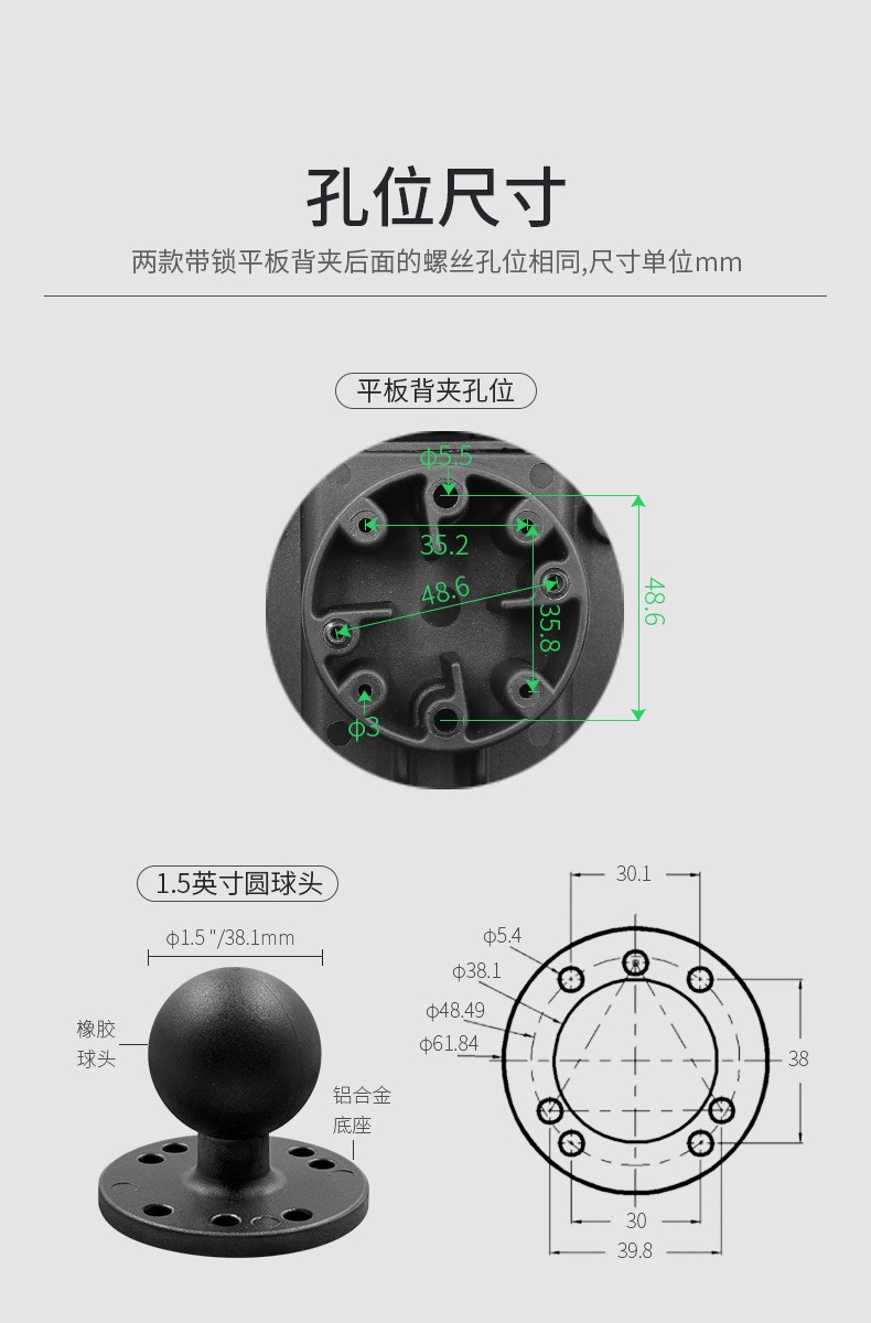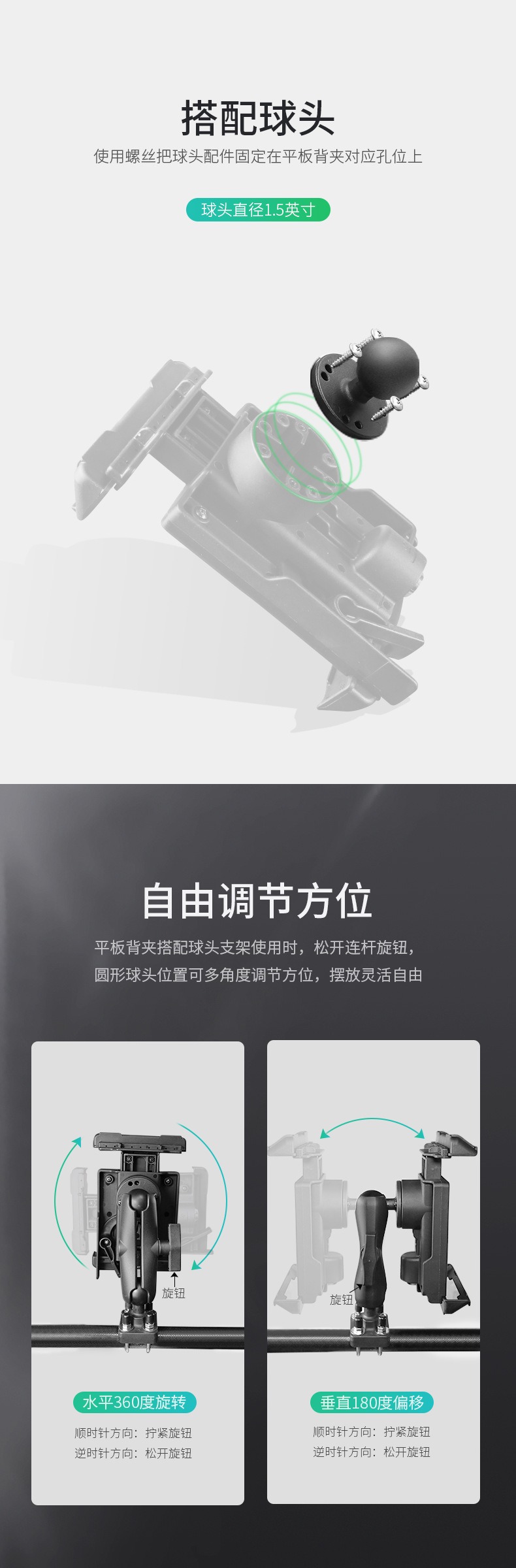 1.5英寸球头(固定在平板夹后面使用)