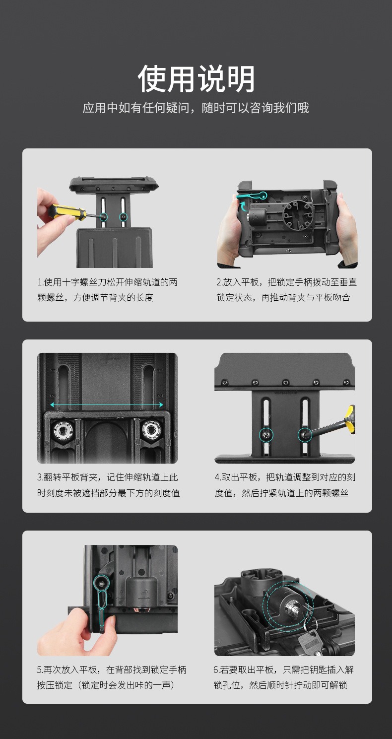 当前位置:首页 » 产品中心 » 祈色物流车载导航设备防盗支架7-8英寸三防数据平板电脑防盗平板支架