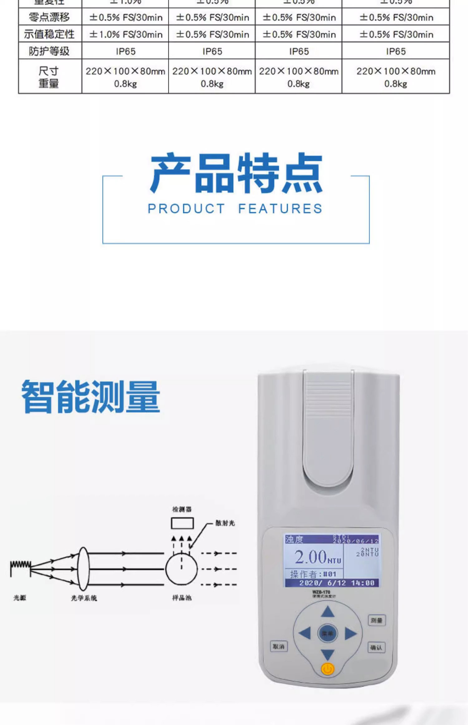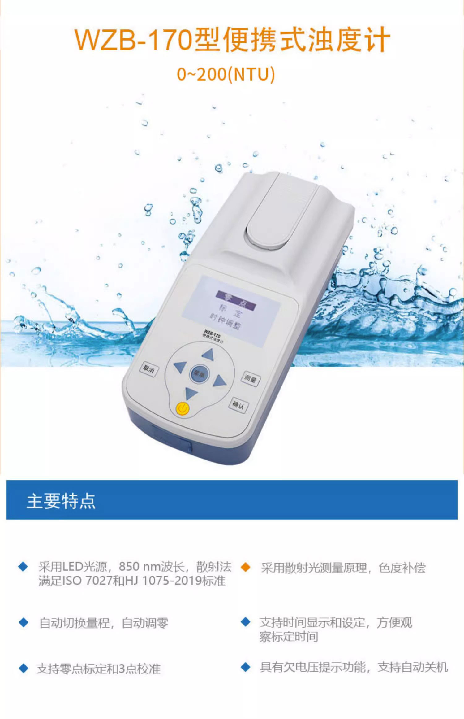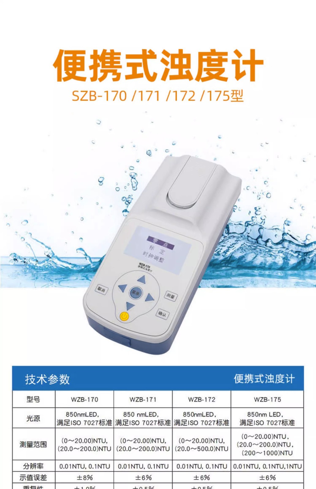 便携式浊度计WZB-170/171/175污水水质浑浊度检测分析仪