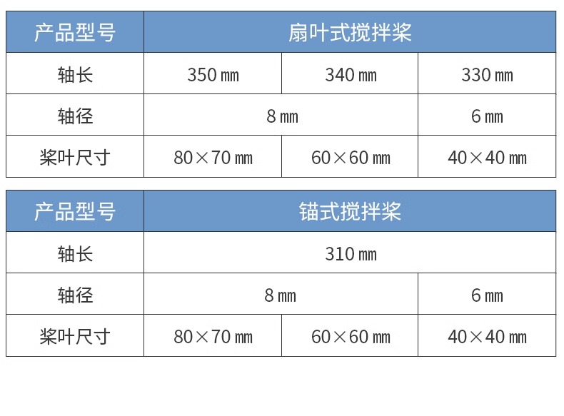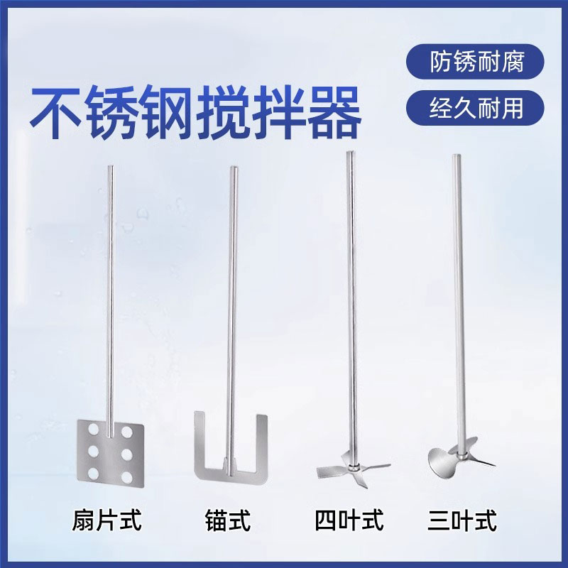 不锈钢搅拌桨实验室液体混合搅拌棒轴三叶四叶锚式扇片式