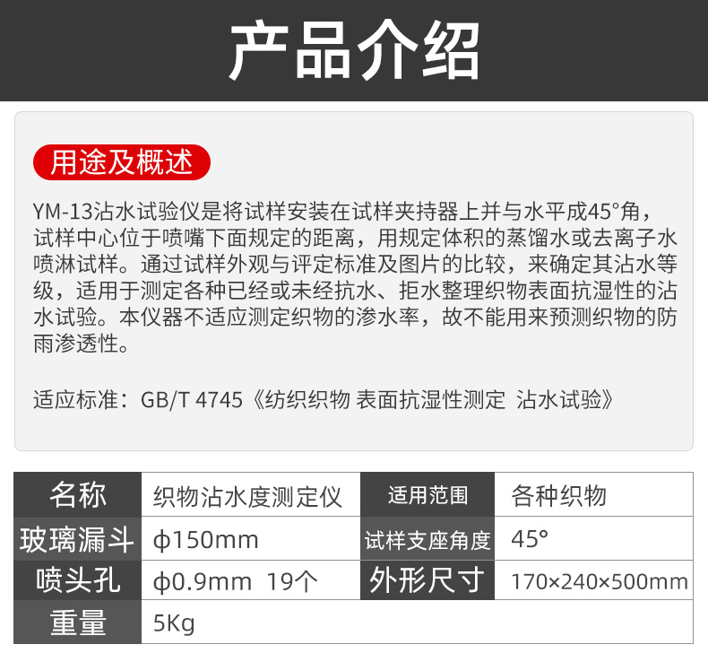 YM-13织物沾水度测定仪表面抗湿性试验仪拒水性测试仪沾水度仪