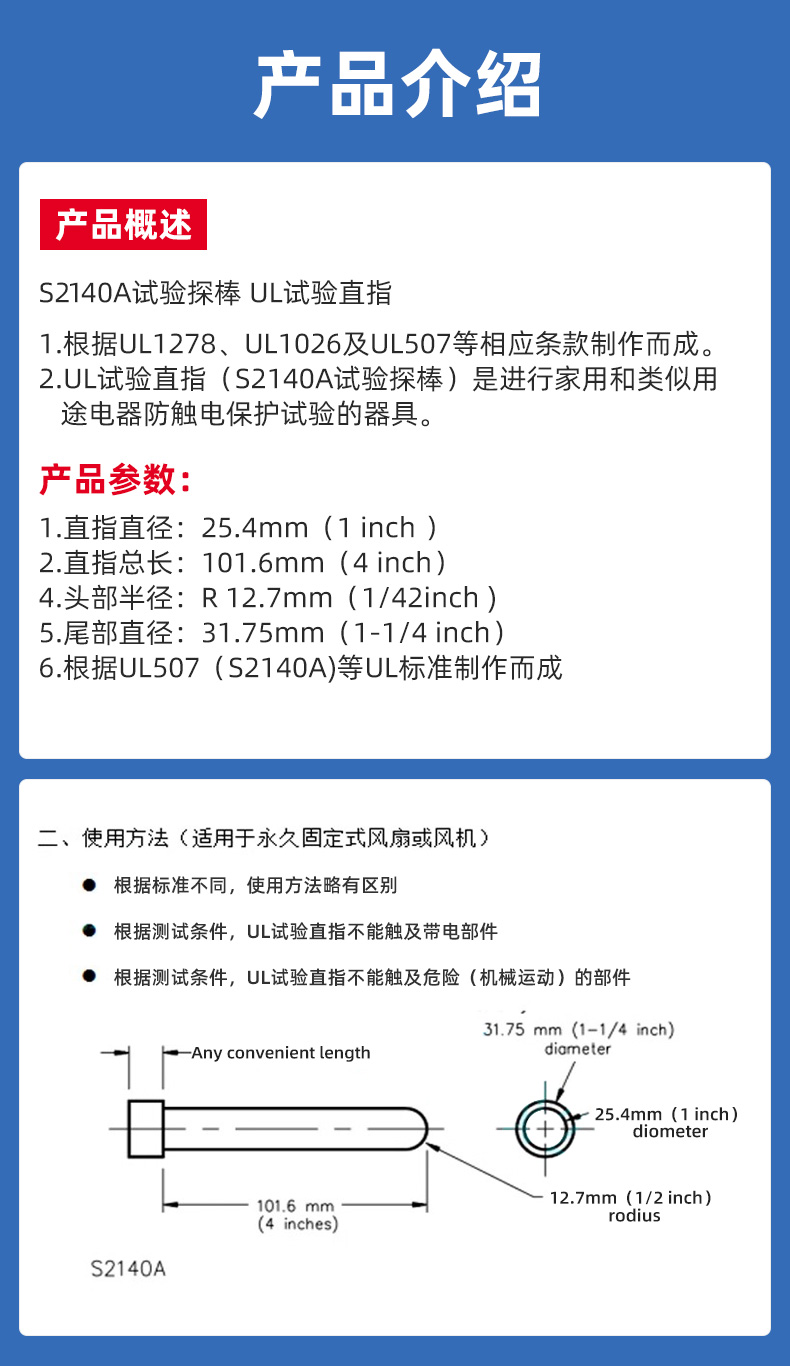 祈鑫QX-S2140A试验探棒UL试验直指UL507(S2140A) 测试探头安规