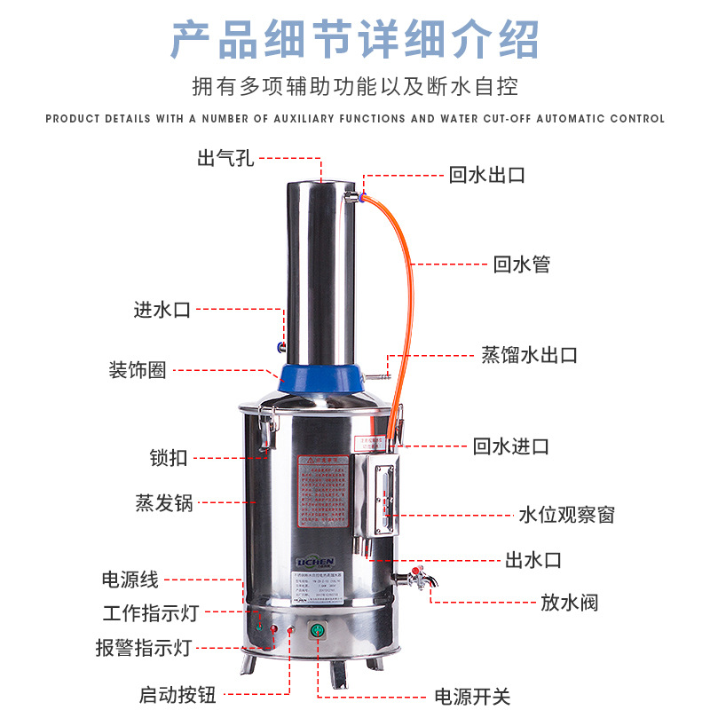 当前位置:首页 » 产品中心 » 5L断水自控电热不锈钢蒸馏水器小型实验室自动断水蒸馏水机