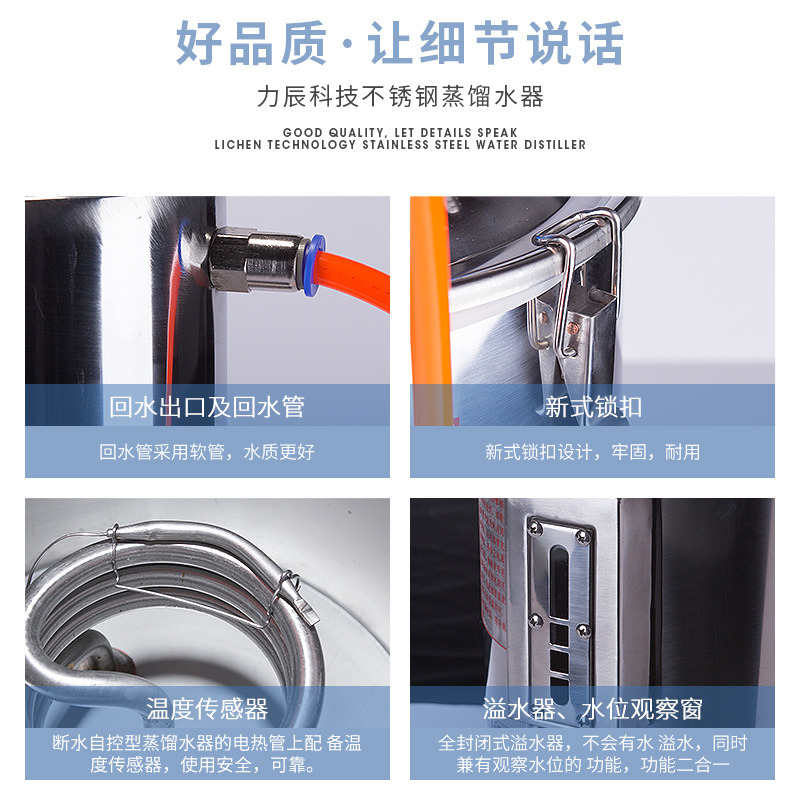 5L断水自控电热不锈钢蒸馏水器小型实验室自动断水蒸馏水机