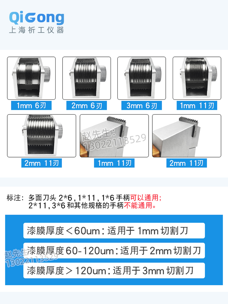 上海普申HGQ漆膜划格器百格刀涂层附着力测试仪6面多刃刀头1mm11