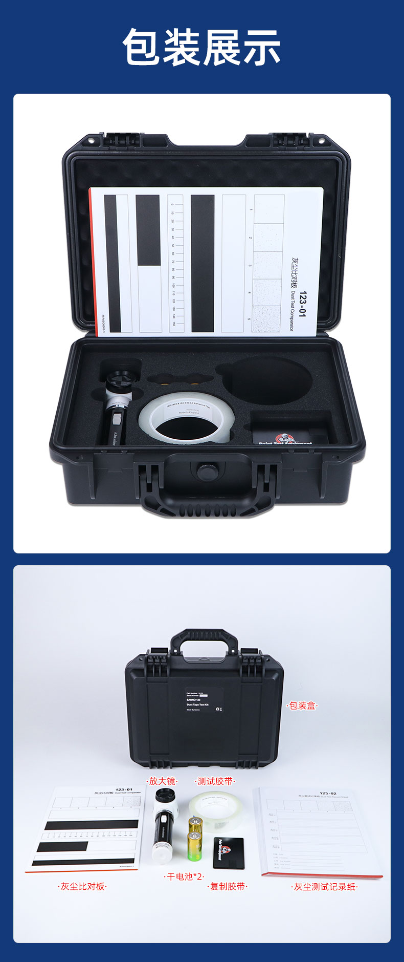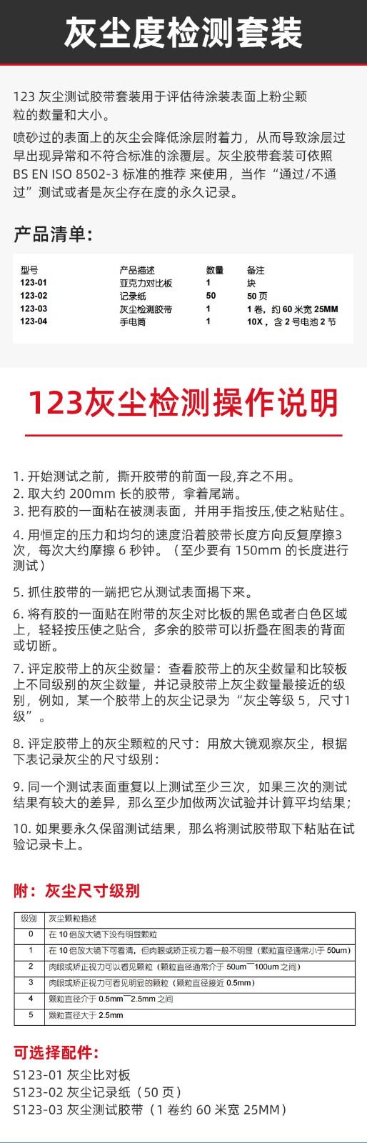 灰尘检测套装灰尘度测试仪套装胶带ISO8502表面灰尘颗粒数量大小