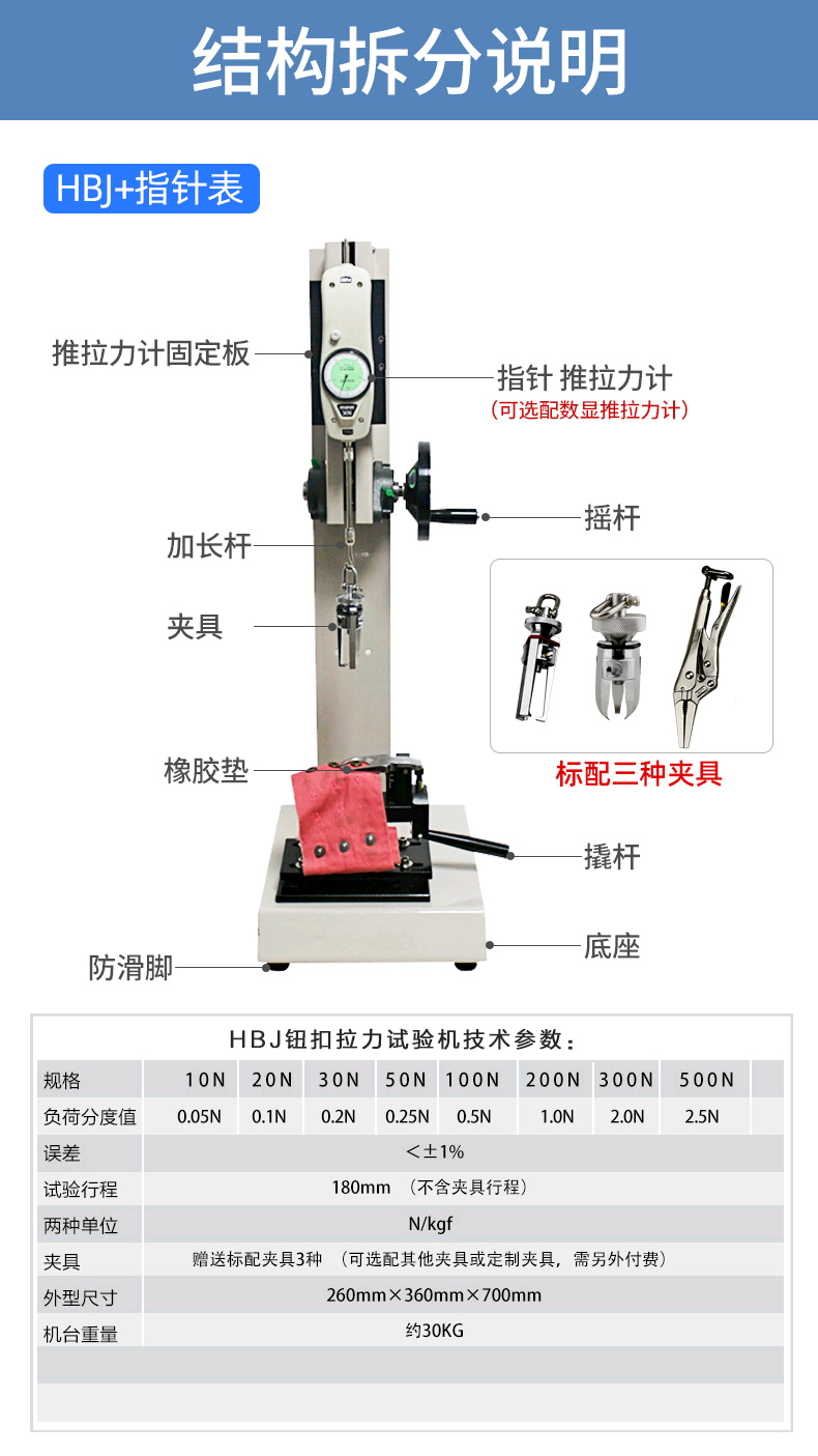 艾德堡HBJ钮扣拉力试验机数显式纽扣拉力测试机四合扣五爪拉力计