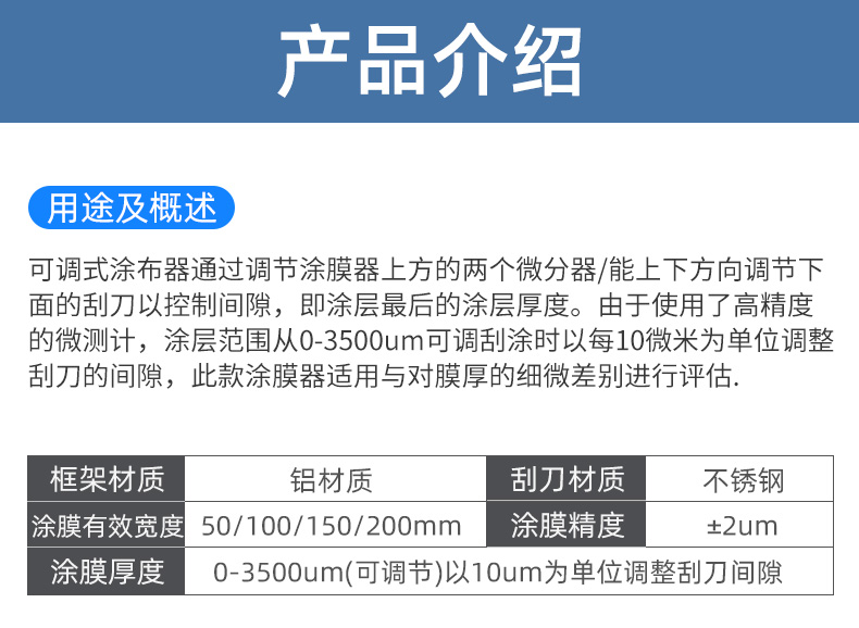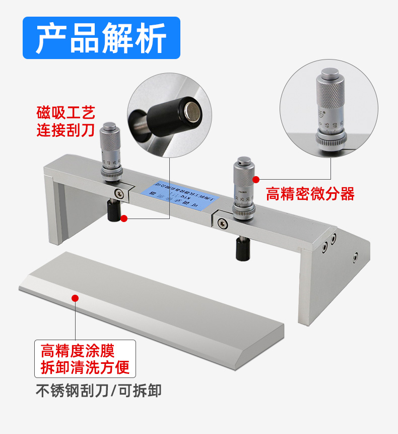 新款KTQ-III磁吸式可调式湿膜制备器涂布器刮膜器微分头0-3500μm