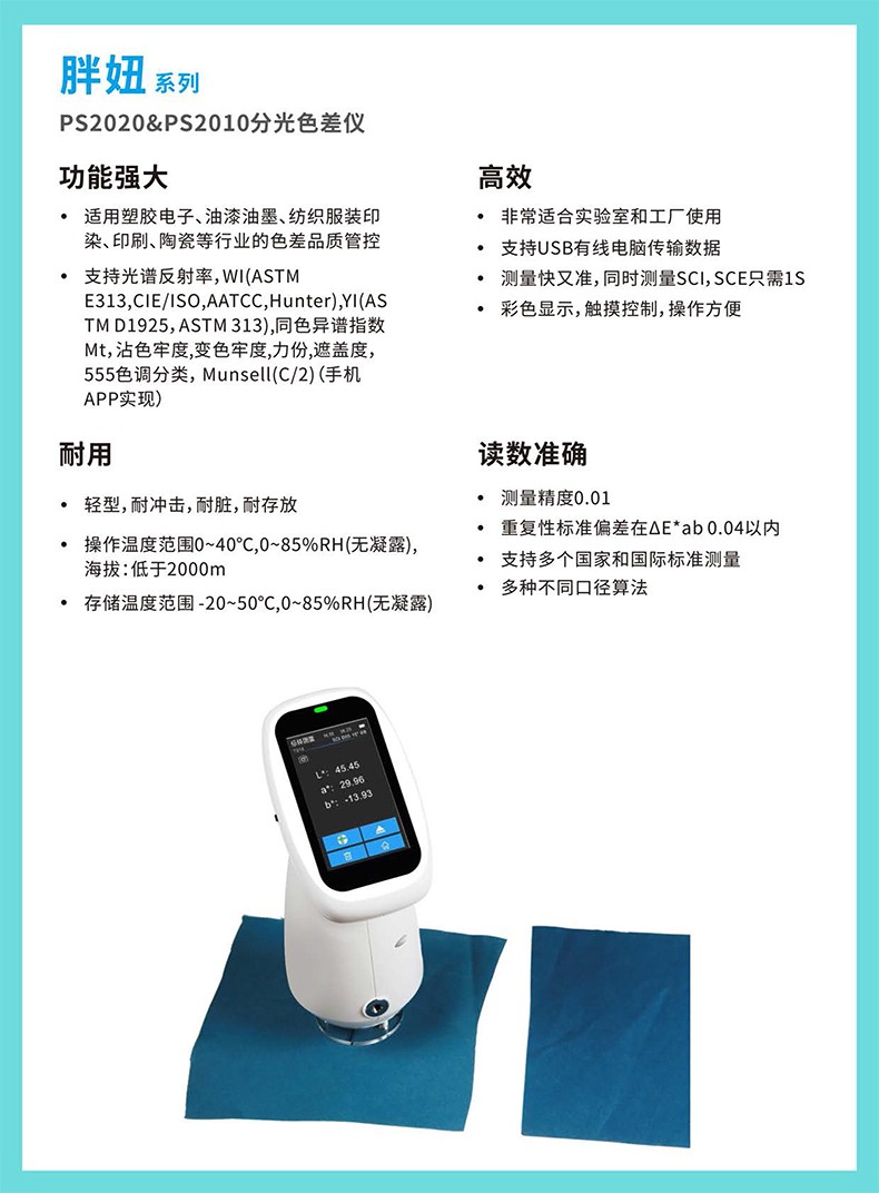 当前位置:首页 » 产品中心 » 3nh胖妞PS2010&2020分光测色仪油漆涂料高精度色差仪颜色检测仪器