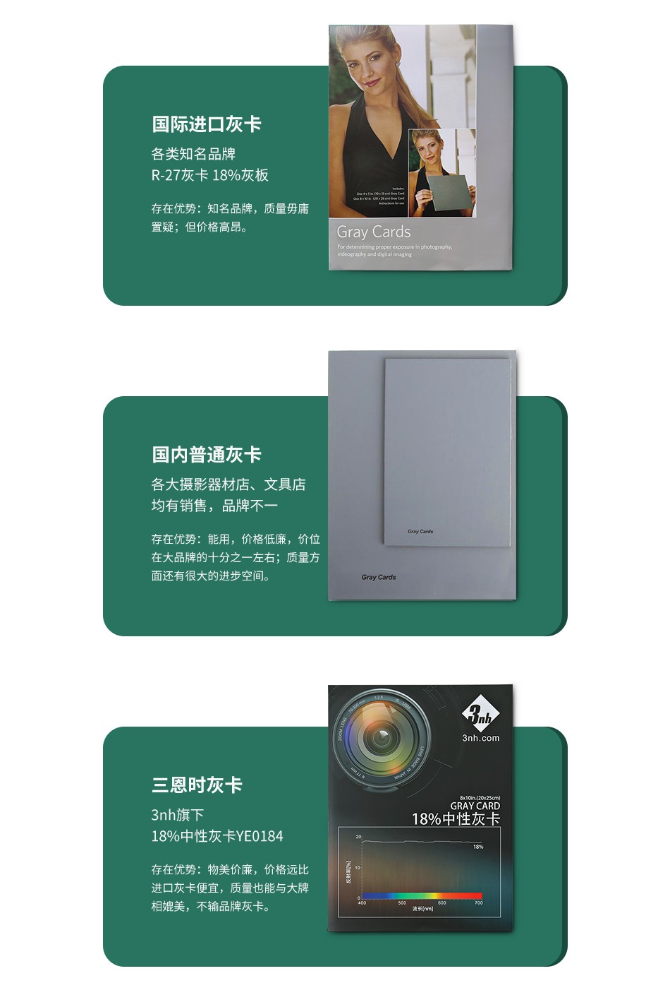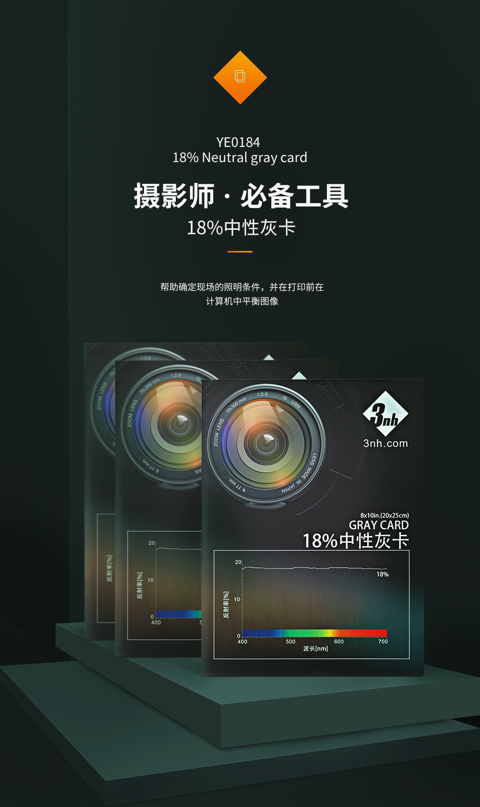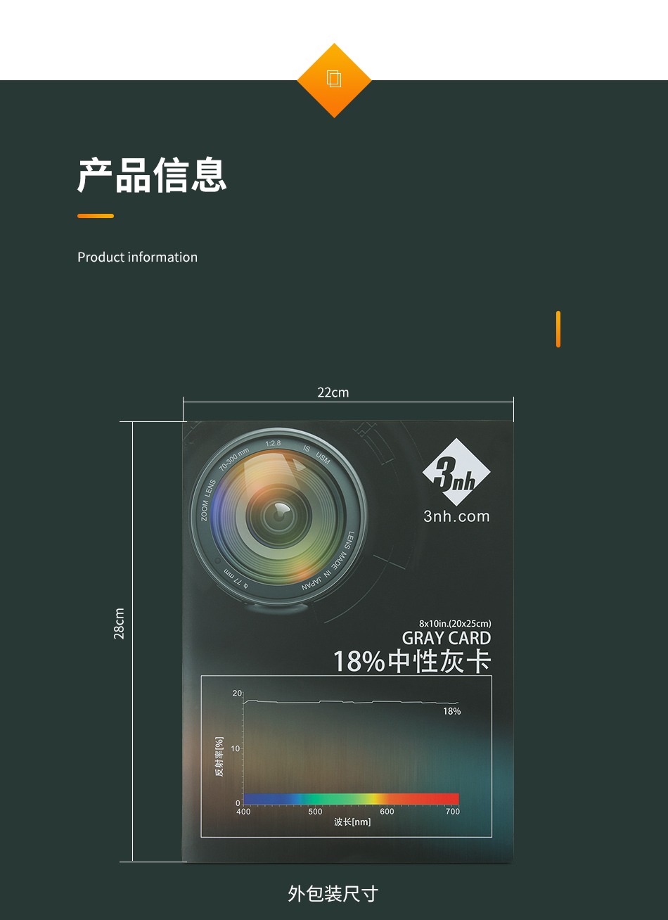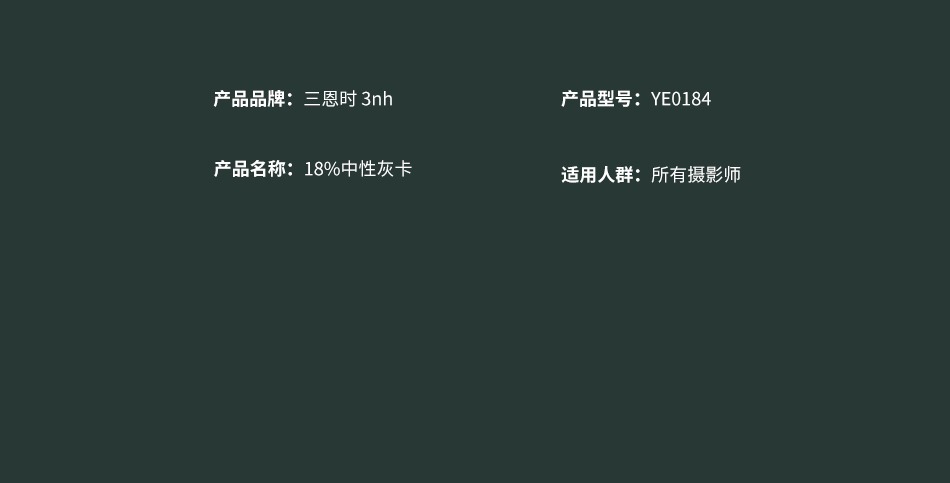 3nh18%中性灰卡摄像头相机白平衡校正色卡曝光色彩饱和均匀度测试