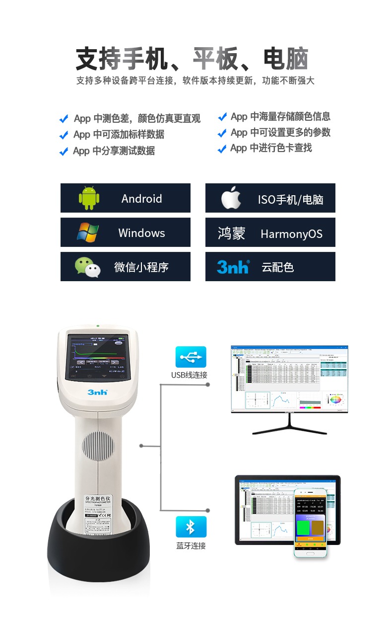 3nh酷泰ST50/60/70光栅分光测色仪塑胶电子油漆油墨纺织色差仪