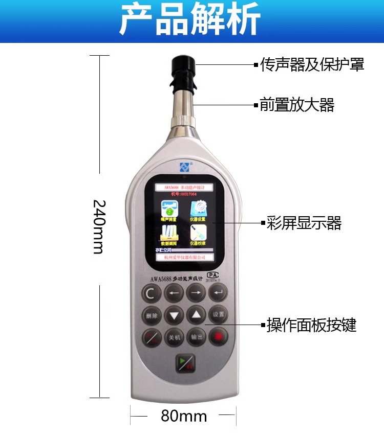 杭州爱华AWA5688型多功能声级计 噪声统计分析仪 打印型 噪声仪