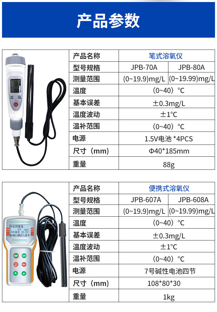 齐威笔式/便携式溶氧仪JPB-607A水中含氧量 鱼虾水产养殖淡水污水