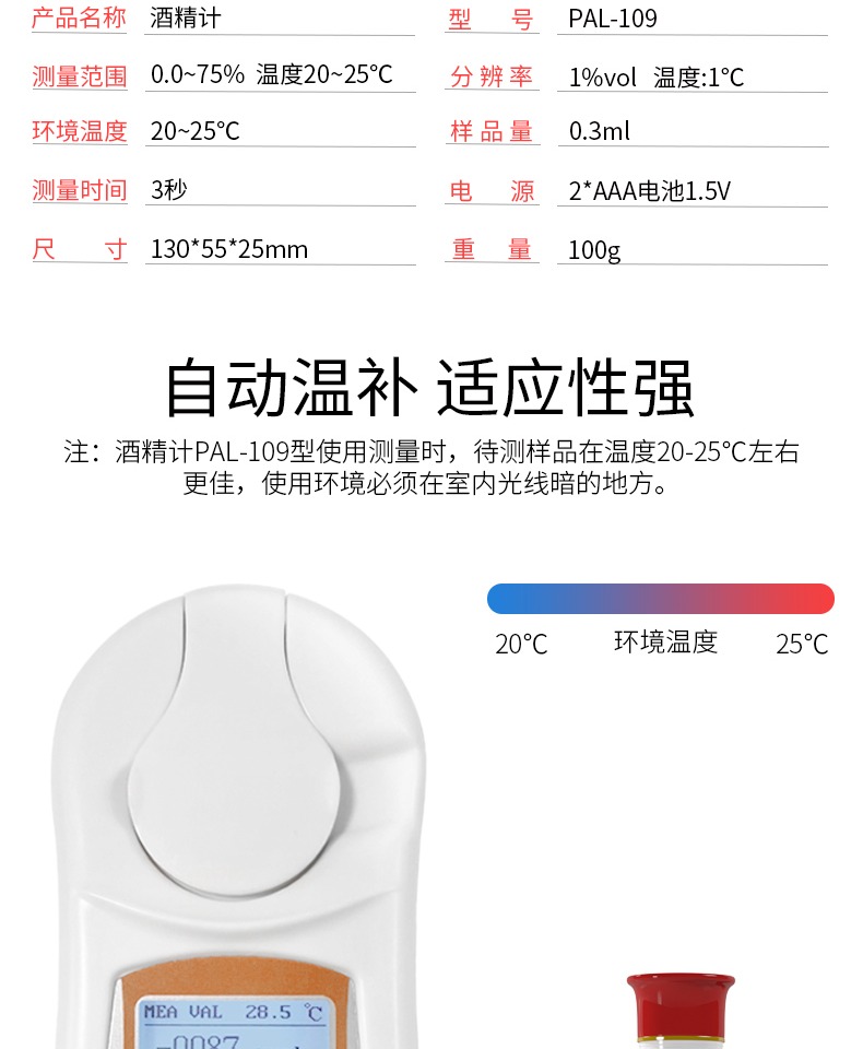 当前位置:首页 » 产品中心 » 齐威数显酒精计白酒测酒精浓度计家用酒度计PAL-109酒精度数测量