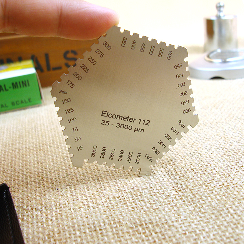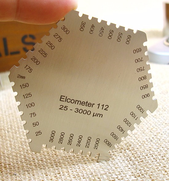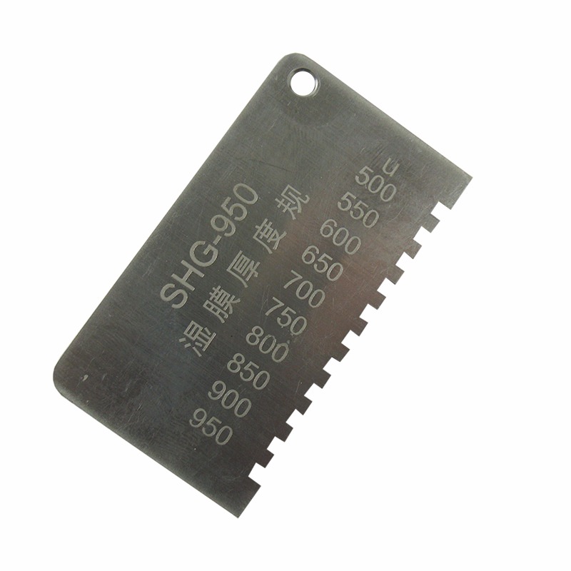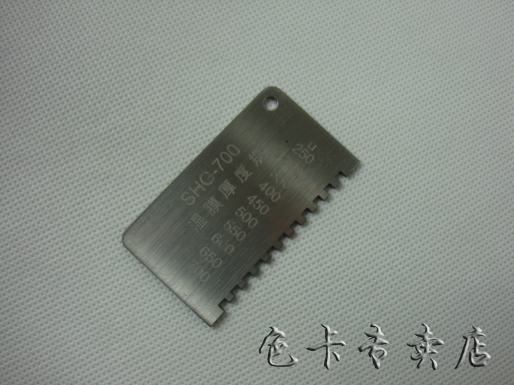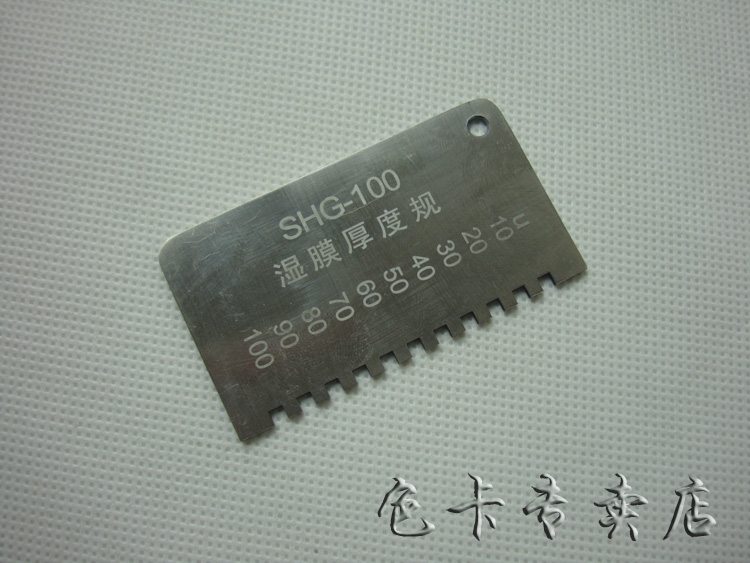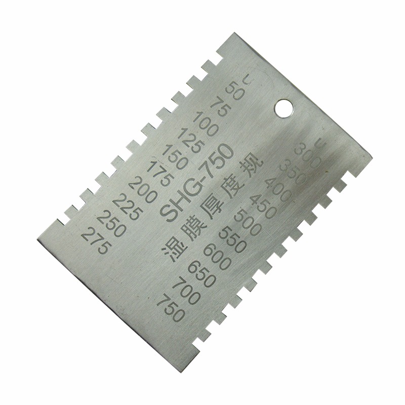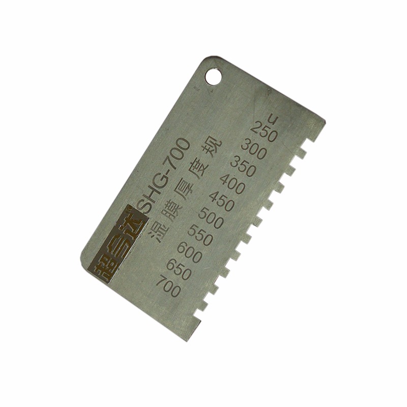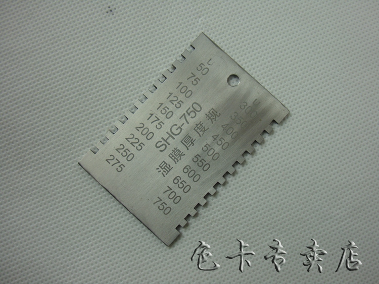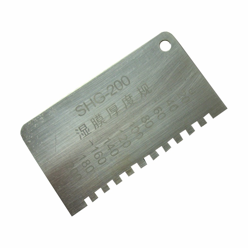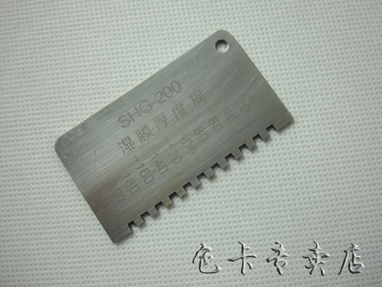 各种涂料施工后,立即将湿膜厚度规稳定垂直的放在平整的湿膜涂层表面,将湿膜厚仪从湿膜中移出,即可测得湿膜涂层的厚度。湿膜厚度应是在被湿膜浸润的那个*短的齿及邻近那个没有被浸到的齿之间。