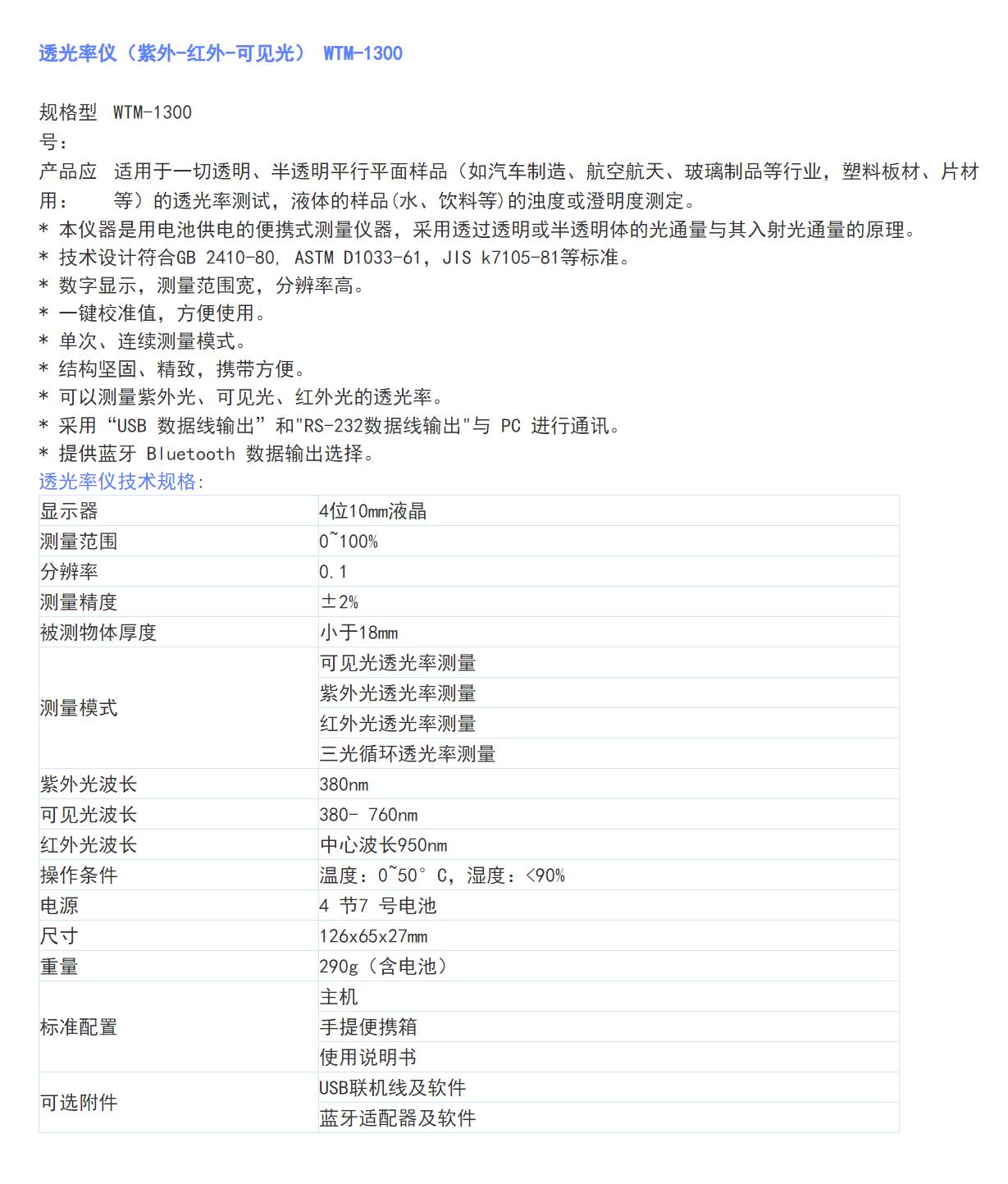 检测透明或半透明平行平面样品的透光率仪WTM-1300