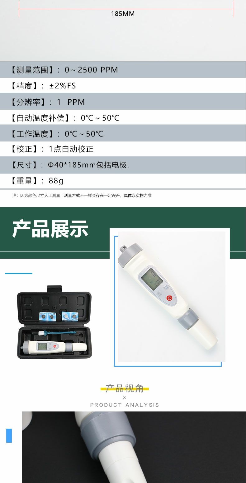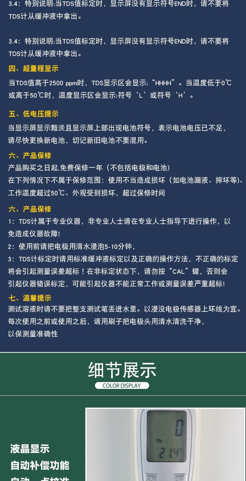 TDS水质检测笔溶液溶解性固体总量检测LCD及温度显示自动温补