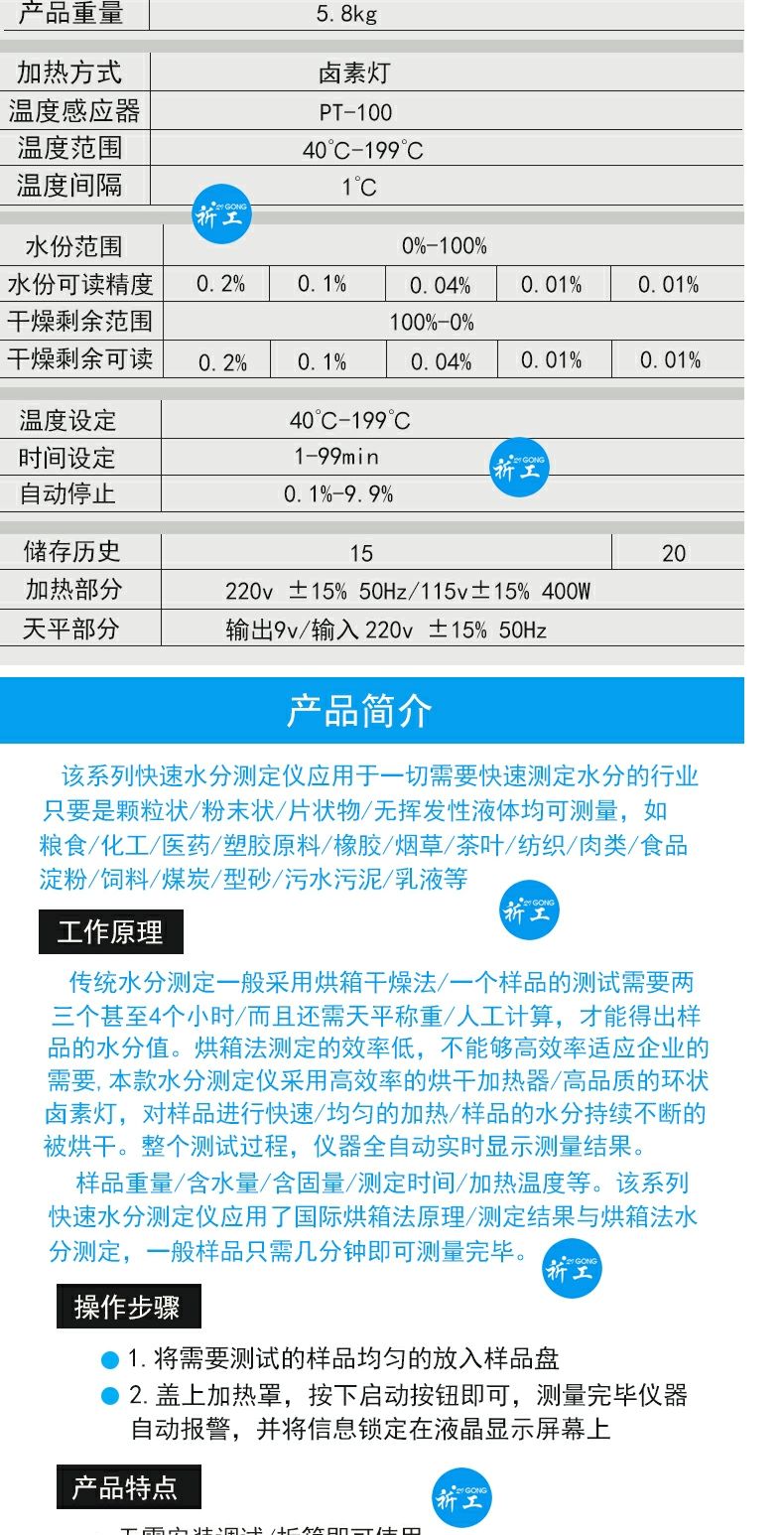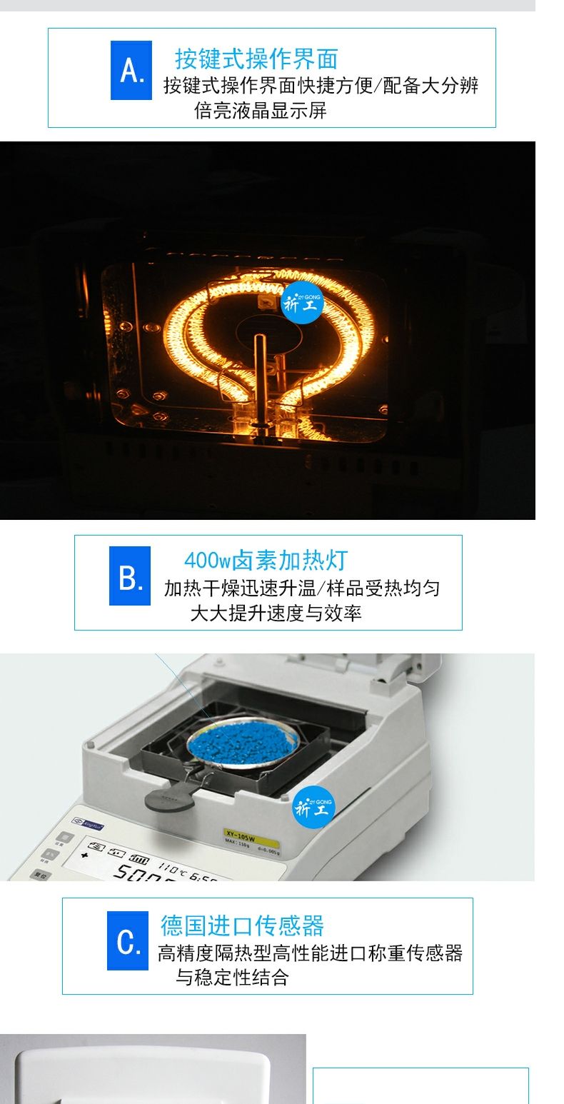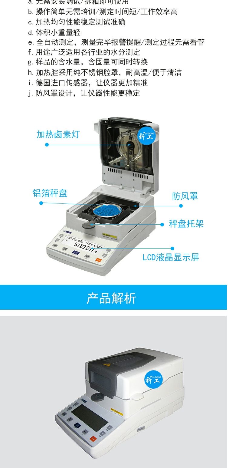 幸运XY-100MW卤素快速水分测定仪粮食食品化工茶叶卤素水份检测仪