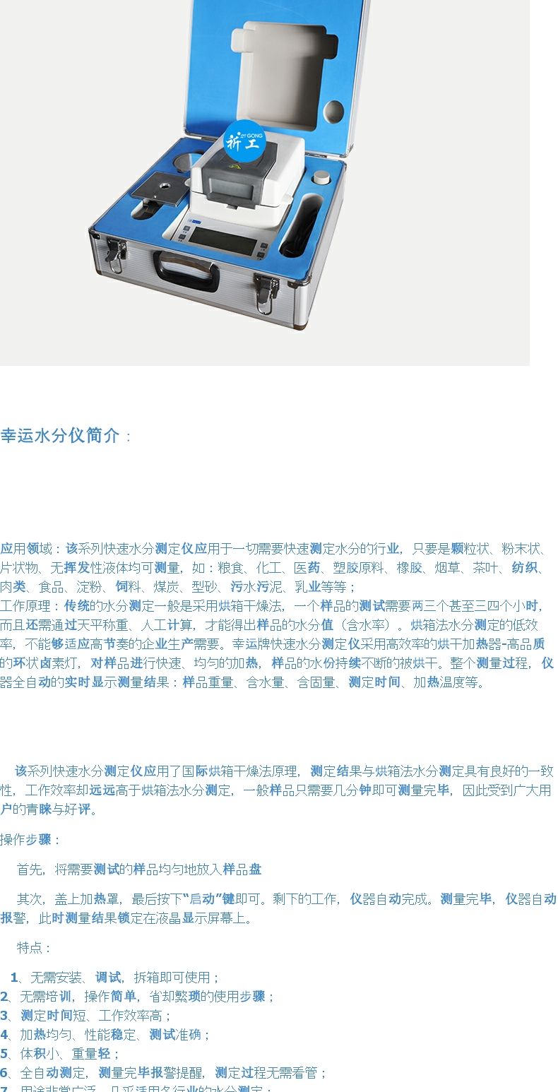 当前位置:首页 » 产品中心 » 幸运XY-100MW卤素快速水分测定仪粮食食品化工茶叶卤素水份检测仪