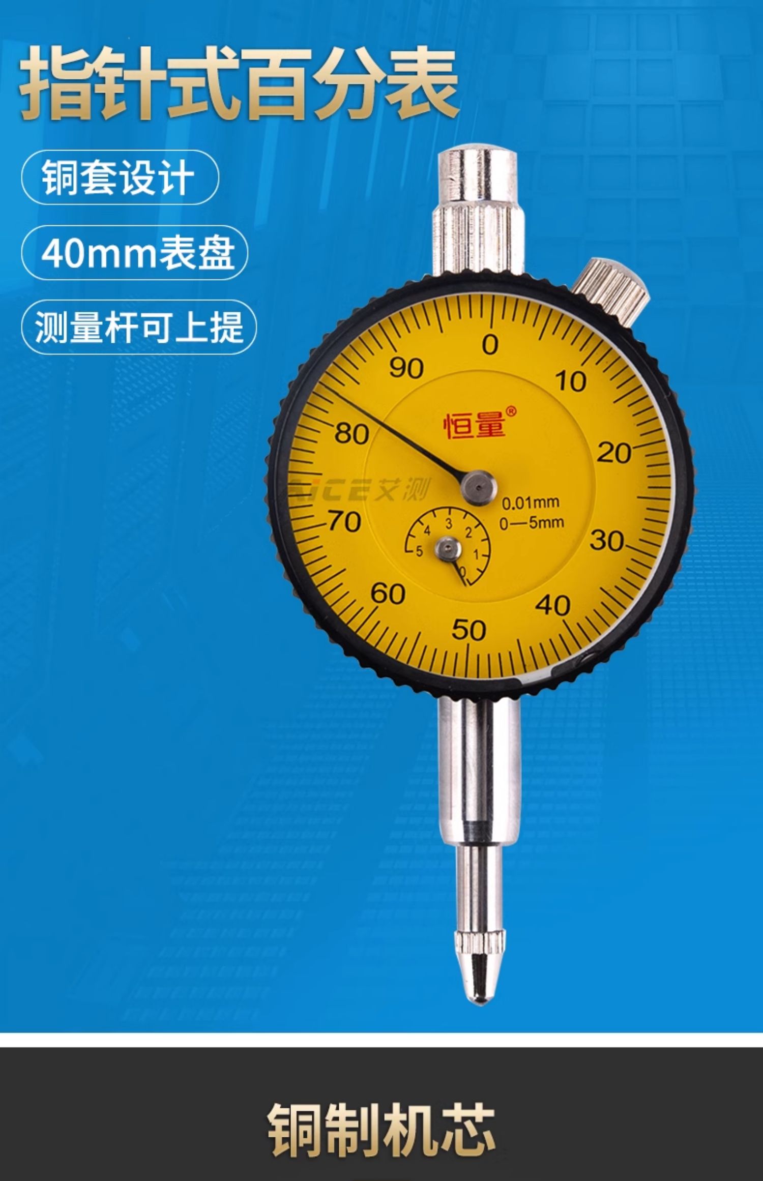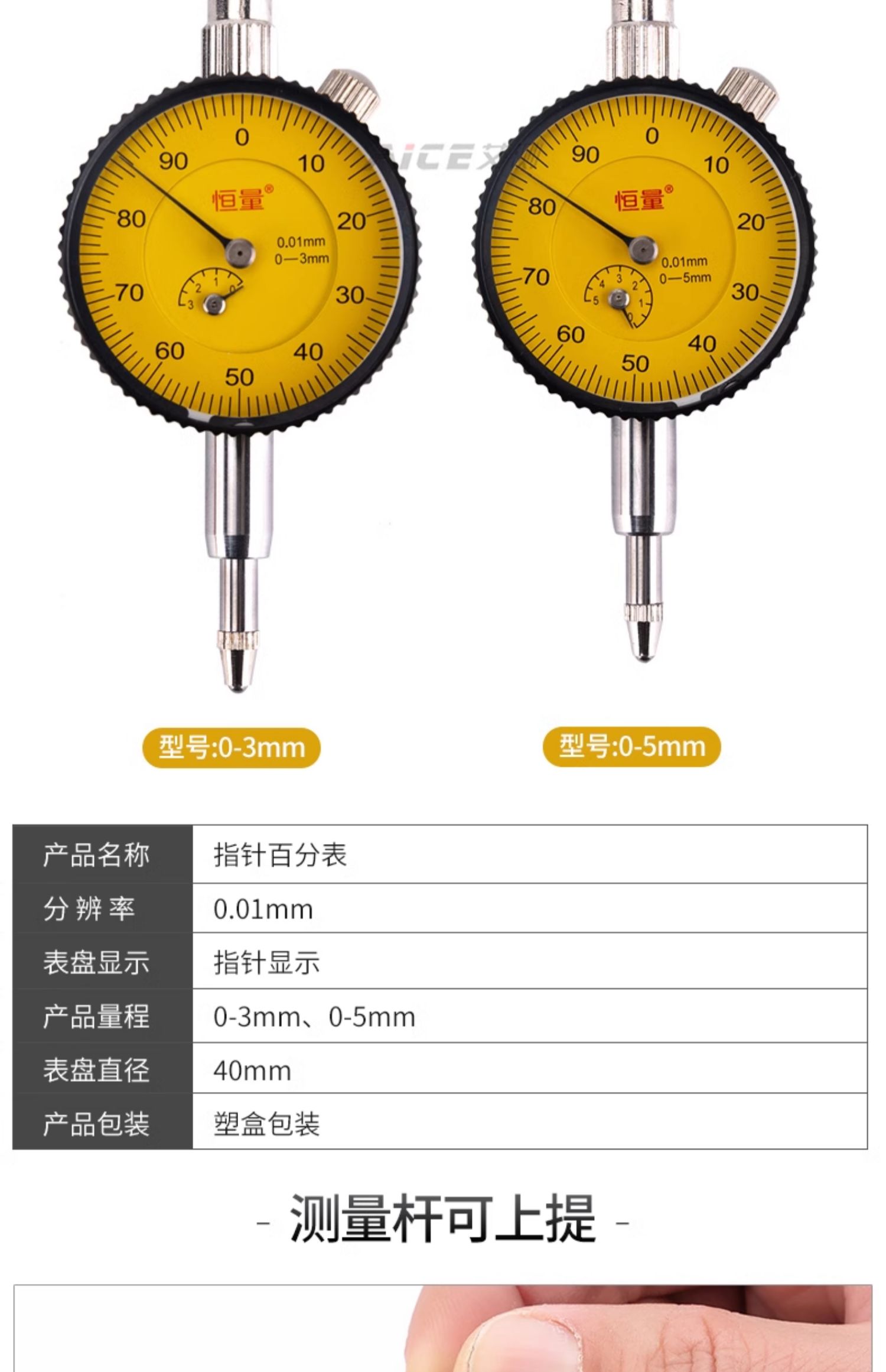 (上海恒量)指针式百分表/小表盘0-3 0-5mm 直径40mm