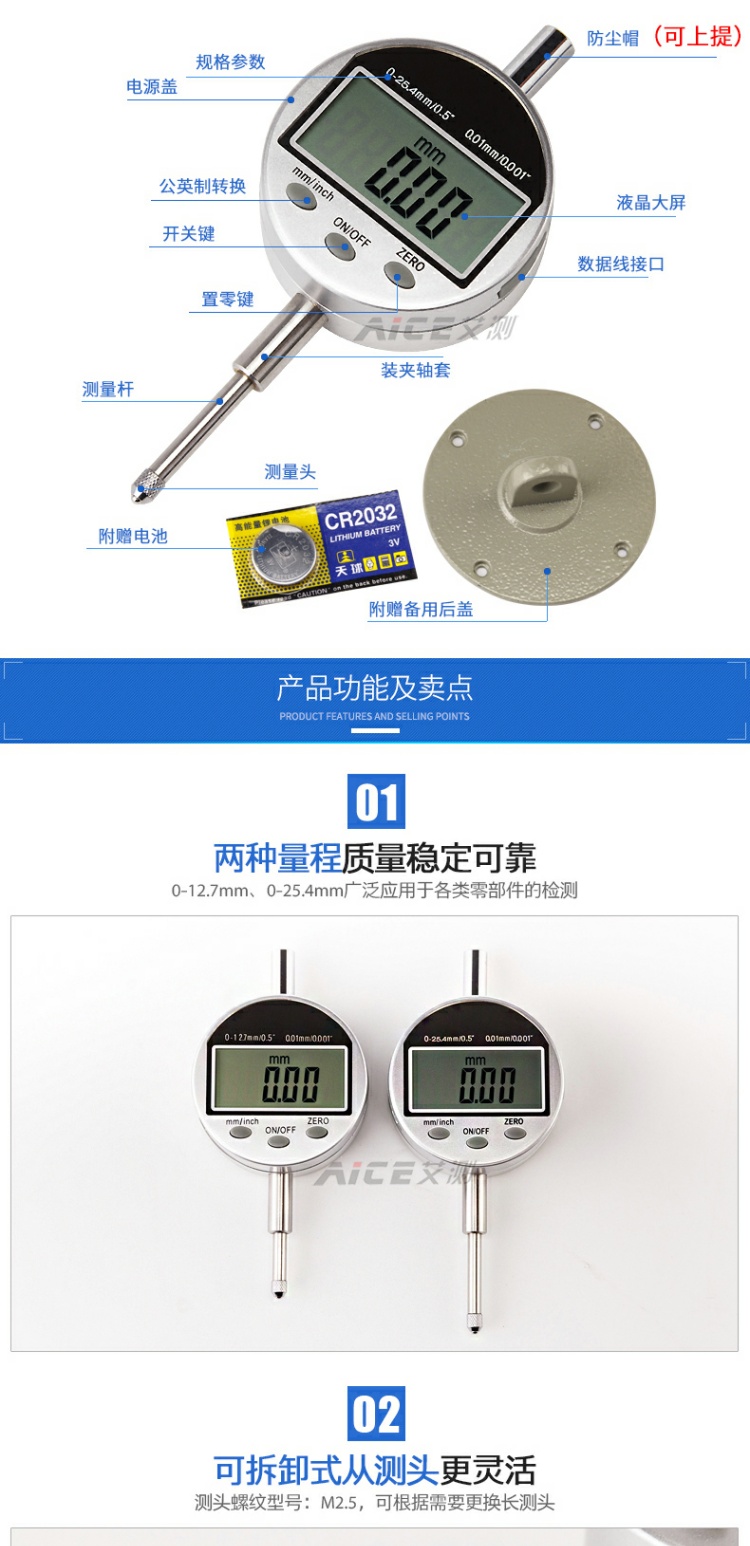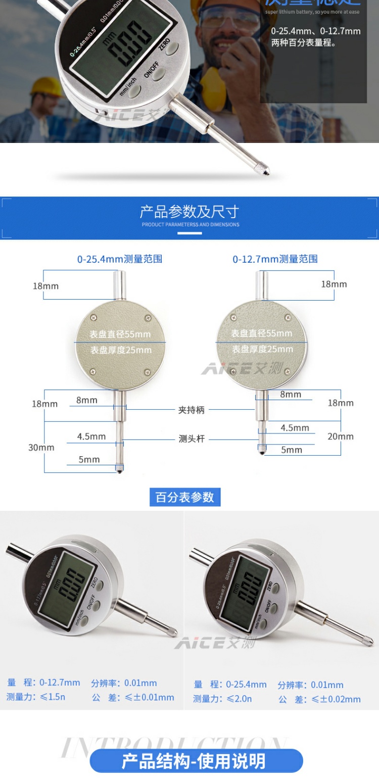 (高精度数显百分表)0-12.7mm/0-25.4mm指示表 3V电池提帽式